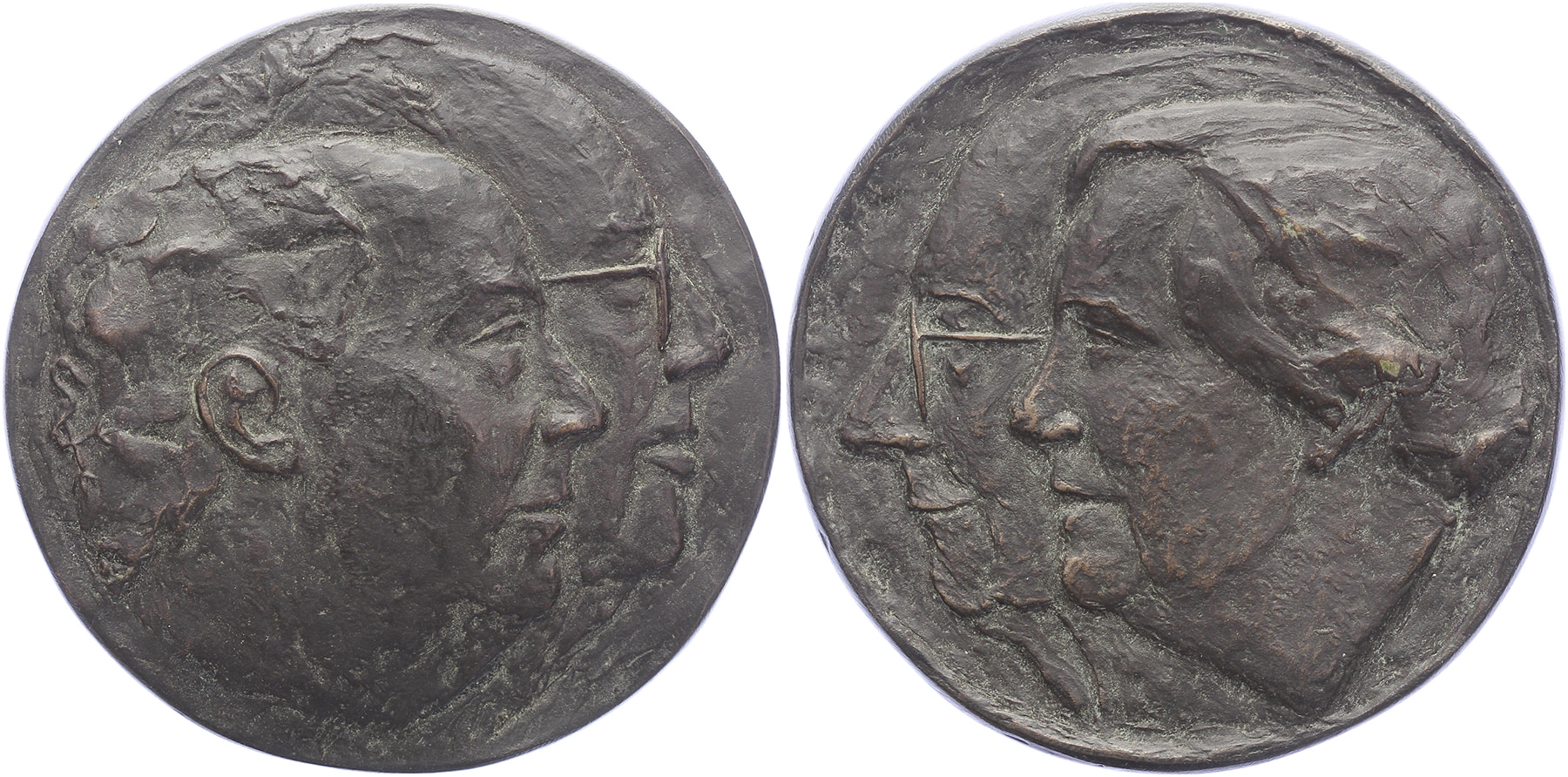 (2004) Familie van der Veen. Dubbelportret naar rechts. / Dubbelportret naar links.Æ gegoten 84. Nieuwendam P63. Carla Klein. Prachtig.