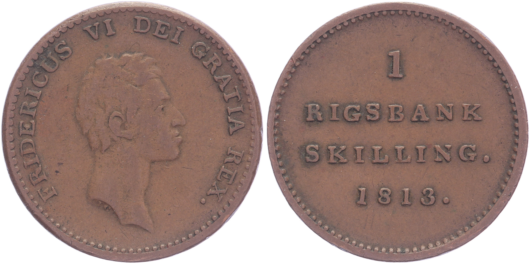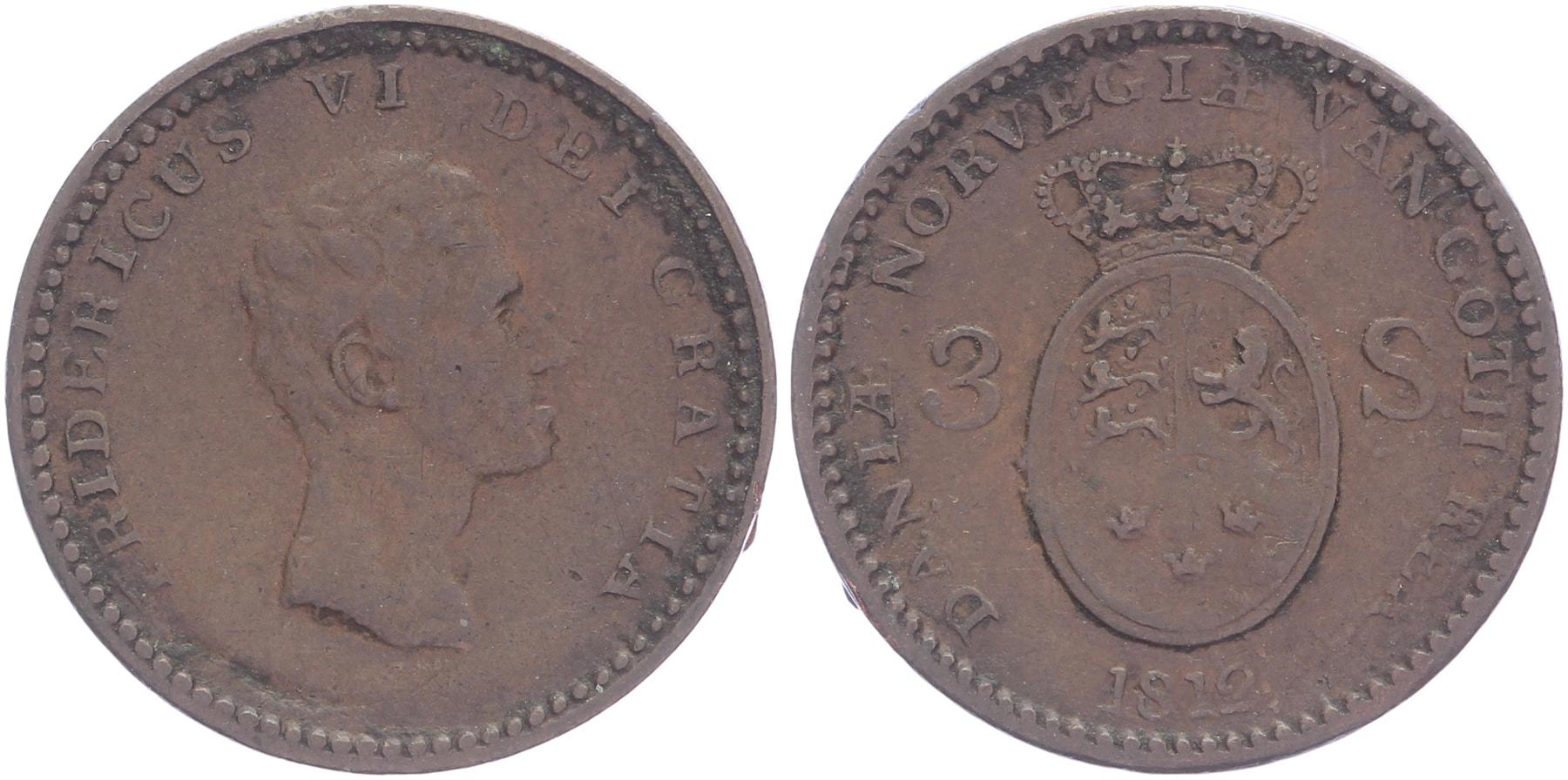 Lot (2) 3 Skilling 1812 & Rigsbankskilling 1813. KM 672, 680. VF.