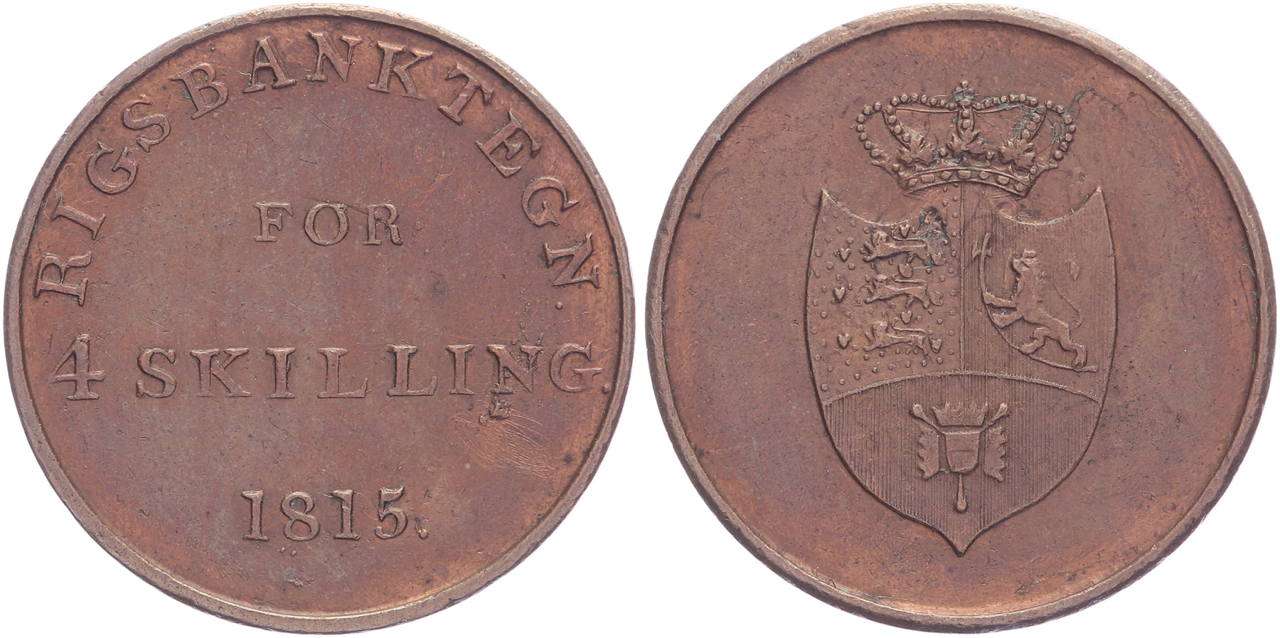 4 Skilling 1815 (Rigsbanktegn). KM Tn6. EF.