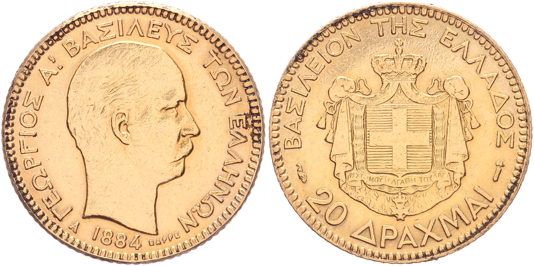 20 Drachmai 1884. Fr. 18. VF.