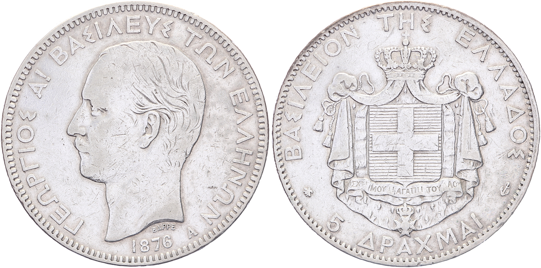 5 Drachmai 1876. KM 46. VF.