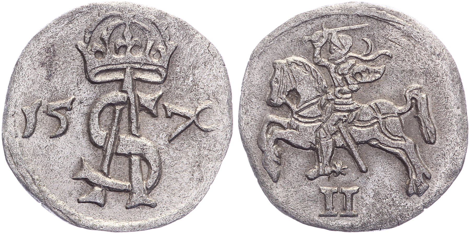 Doppeldenare 1570, Litauen. Gum. 595. EF.