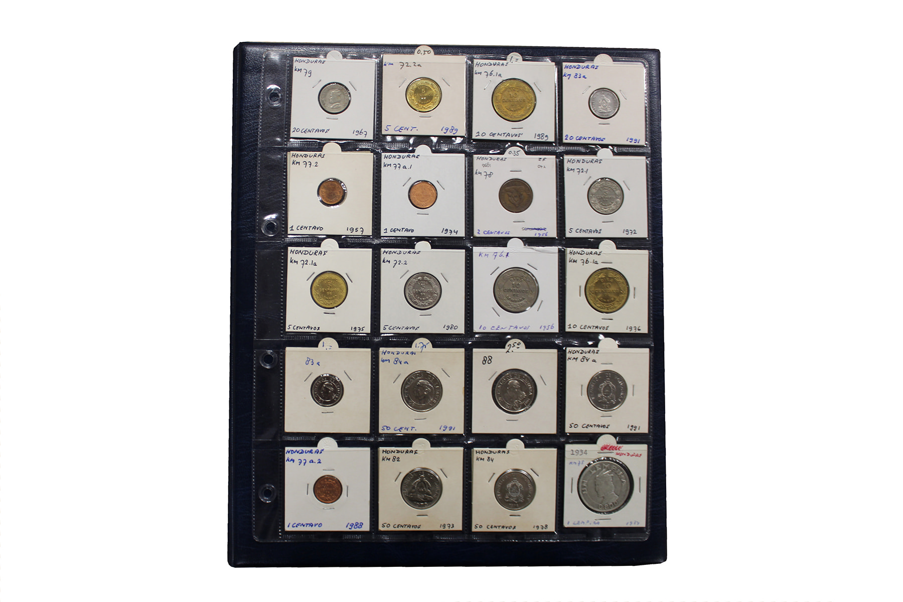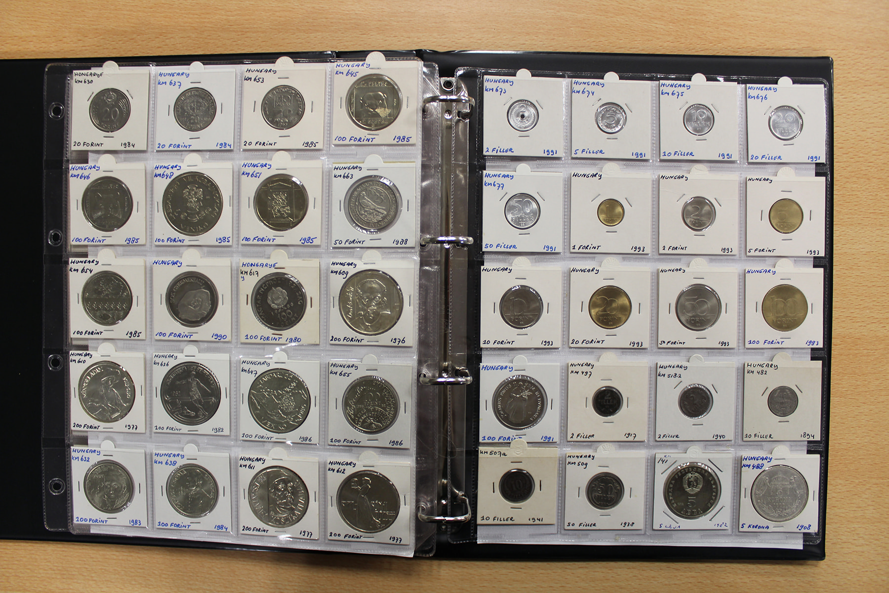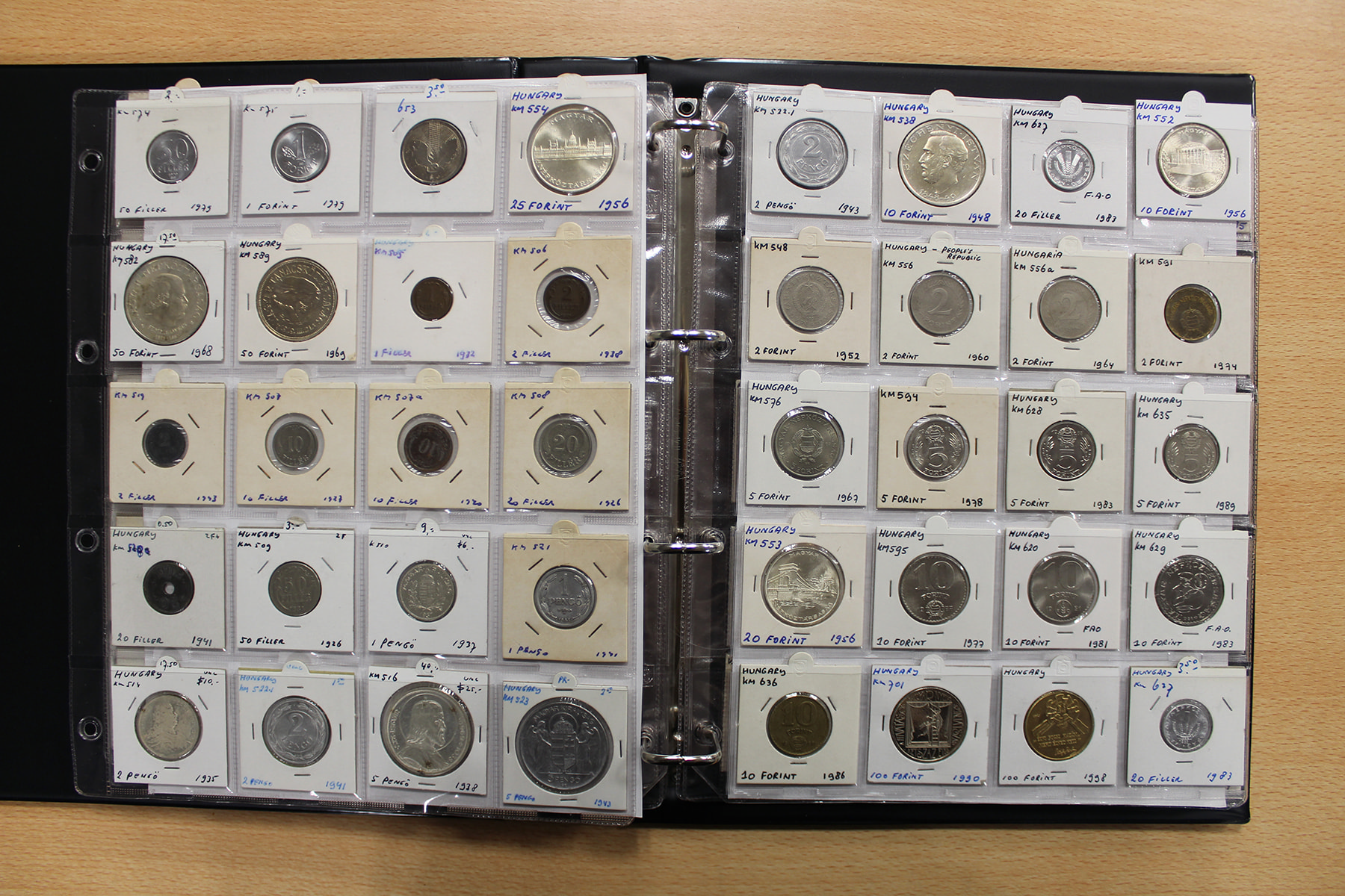Album wereldmunten met o.a. Hongarije, Hong Kong, Honduras en Haïti. Ook zilver. Ca. 195 stuks.