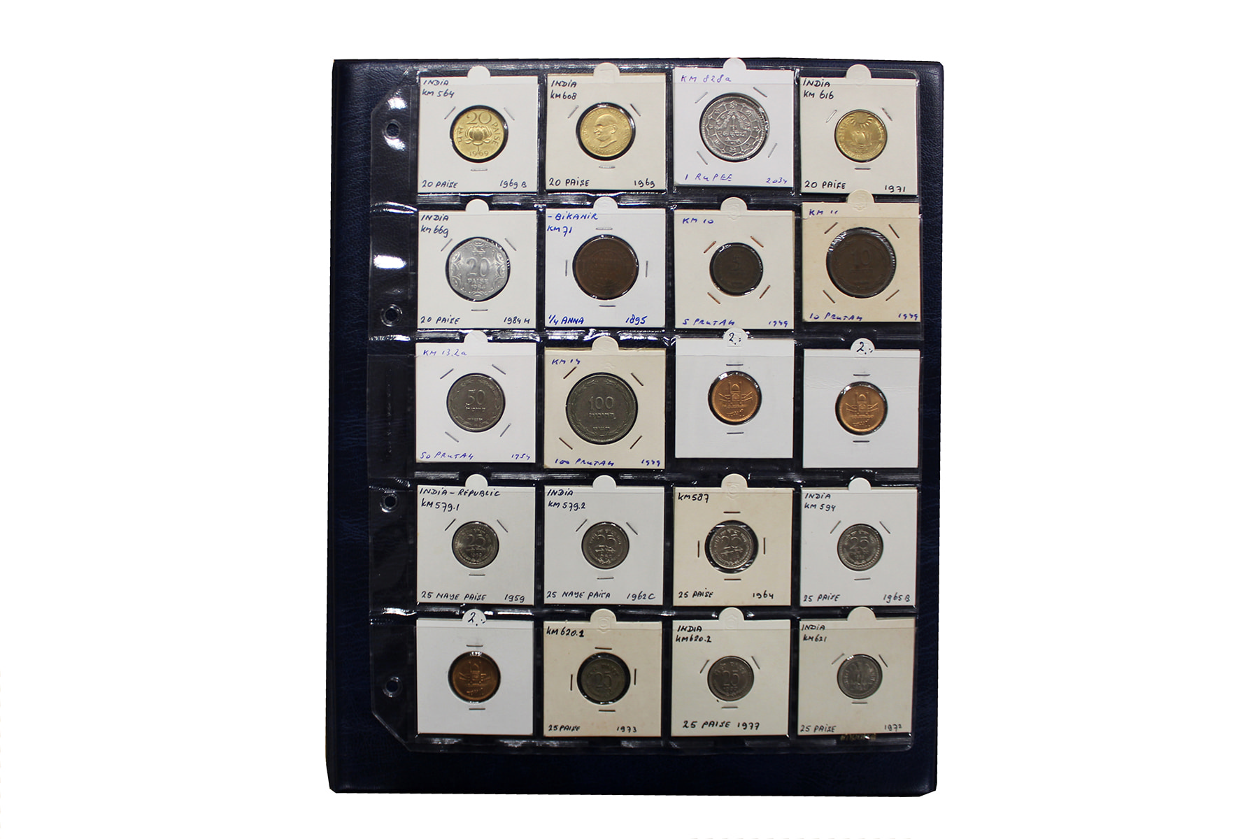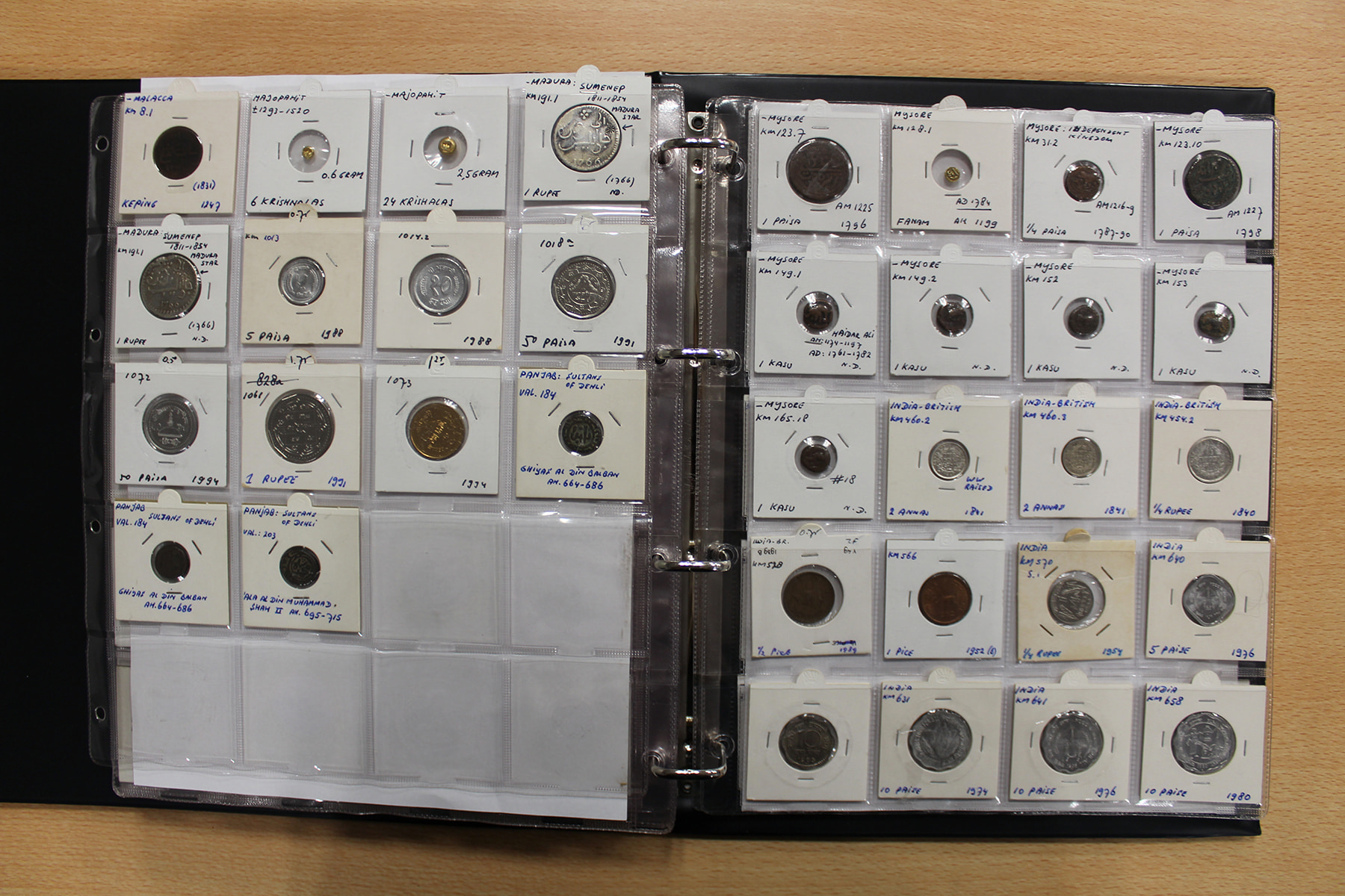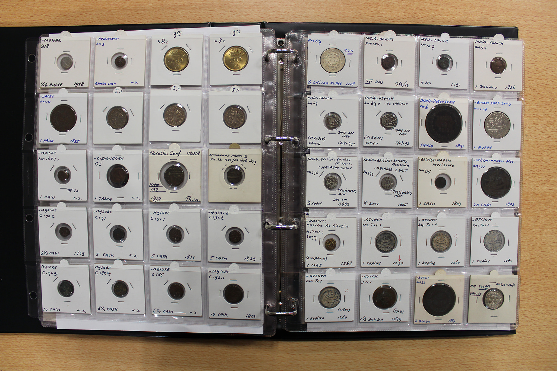 Album wereldmunten met uitsluitend (staten van) India. O.a. Mysore, Kutch, Atjeh etc. Ca. 260 stuks.
