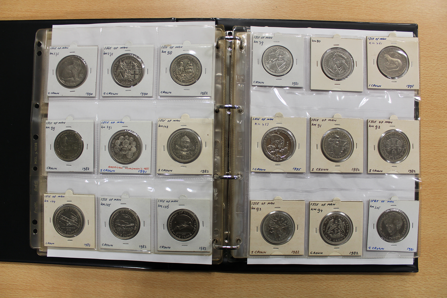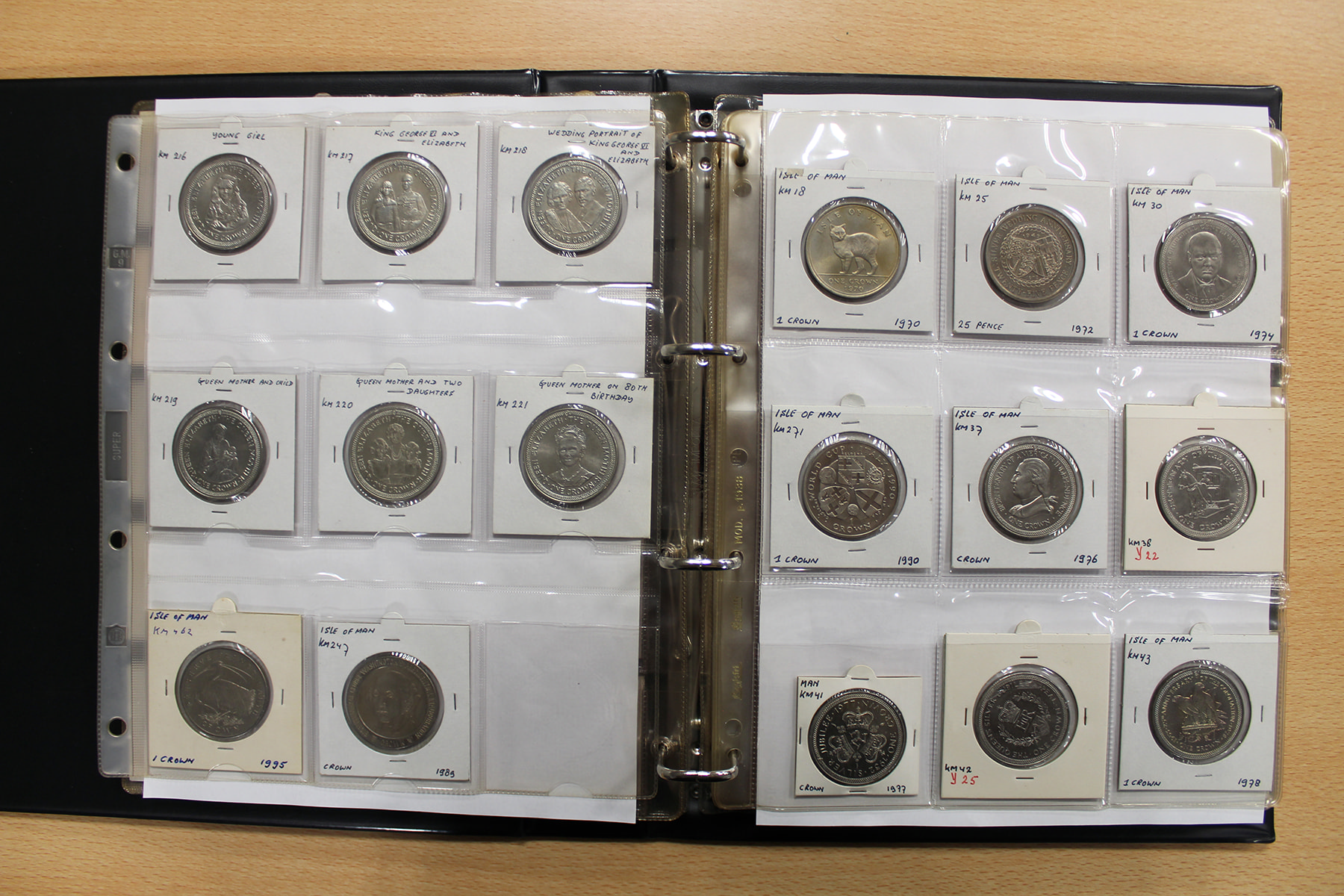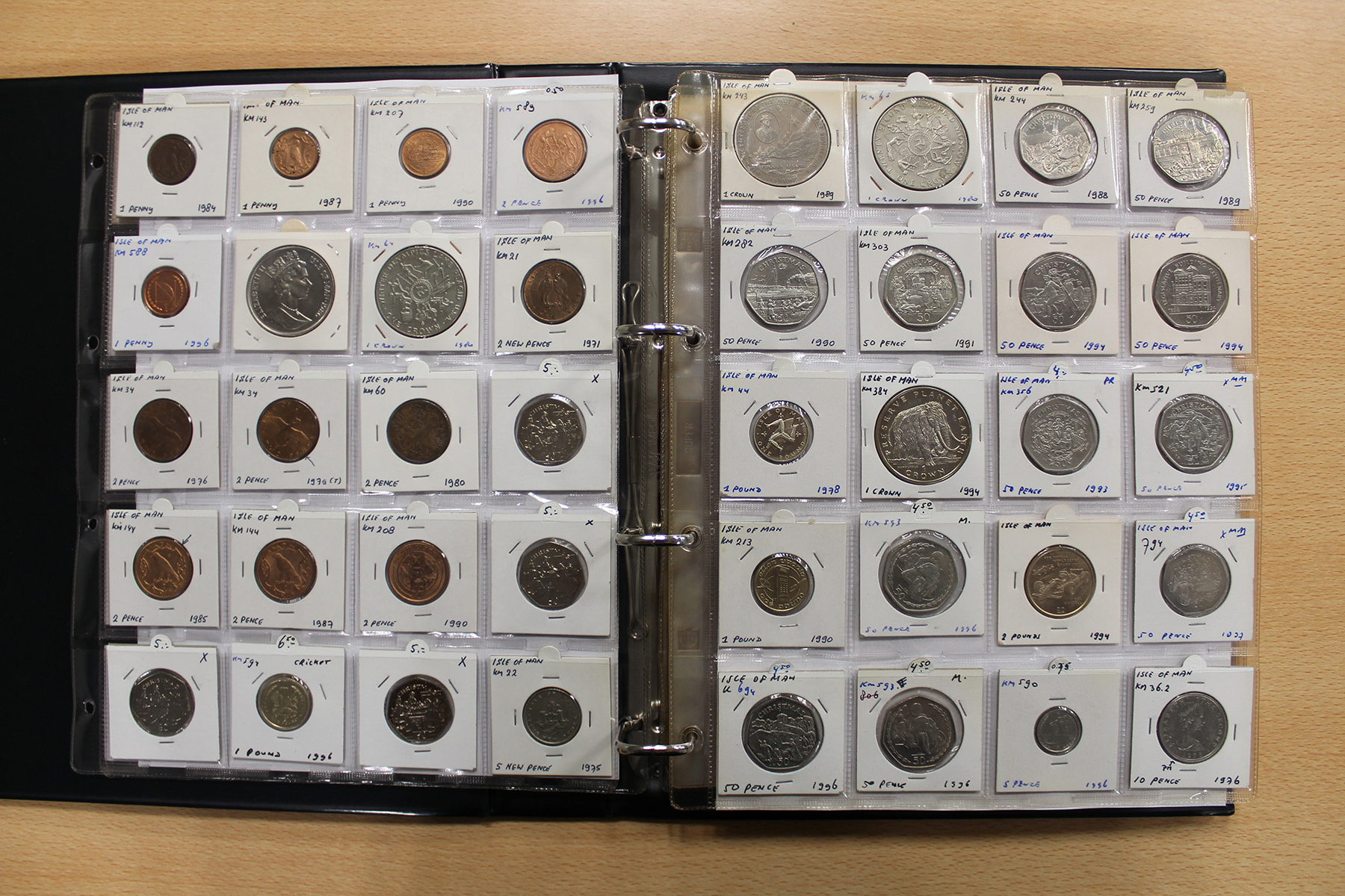 Album wereldmunten met uitsluitend Isle of Man. Veel zilver. Ruim 120 stuks.