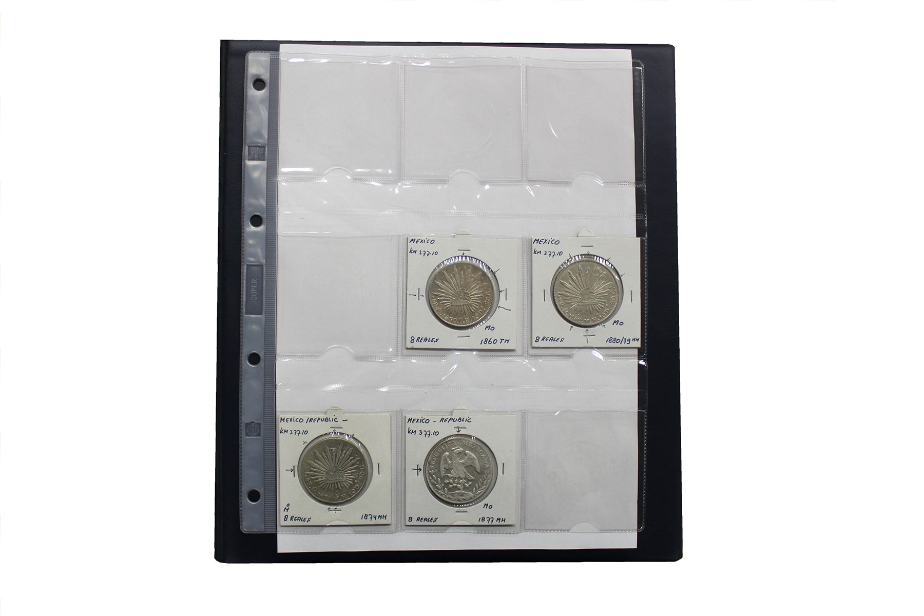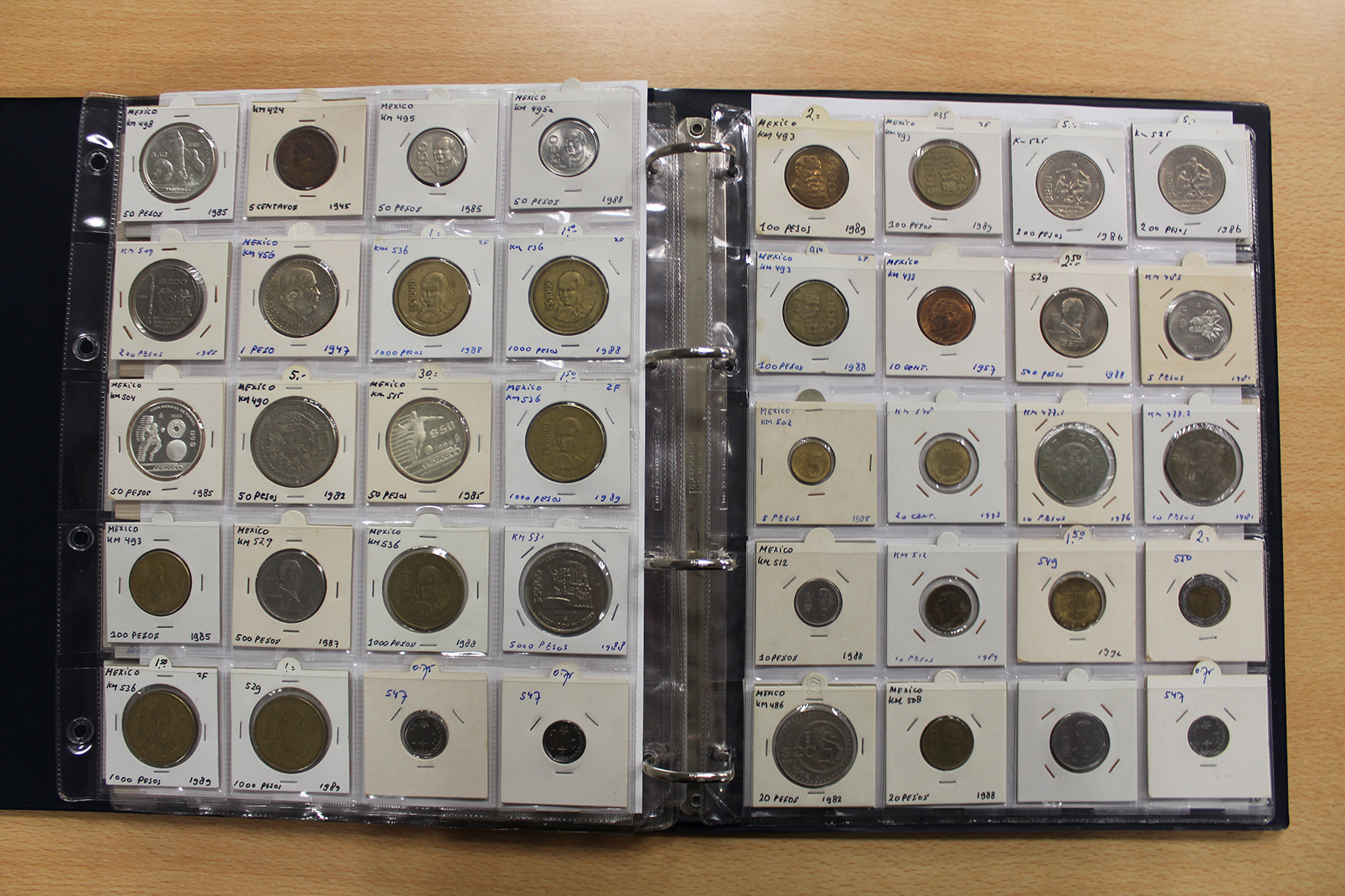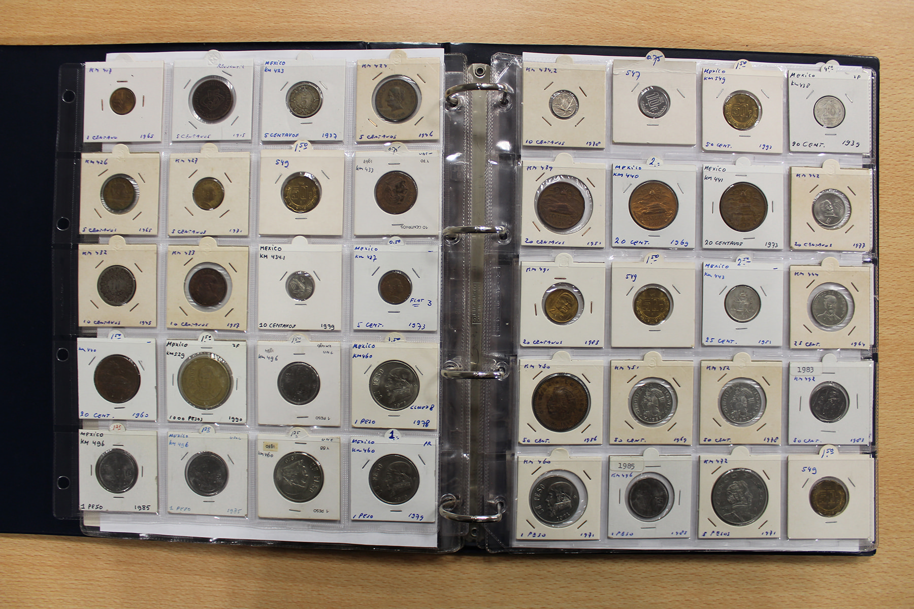 Album wereldmunten met uitsluitend Mexico. Ook zilver. Ca. 140 stuks.