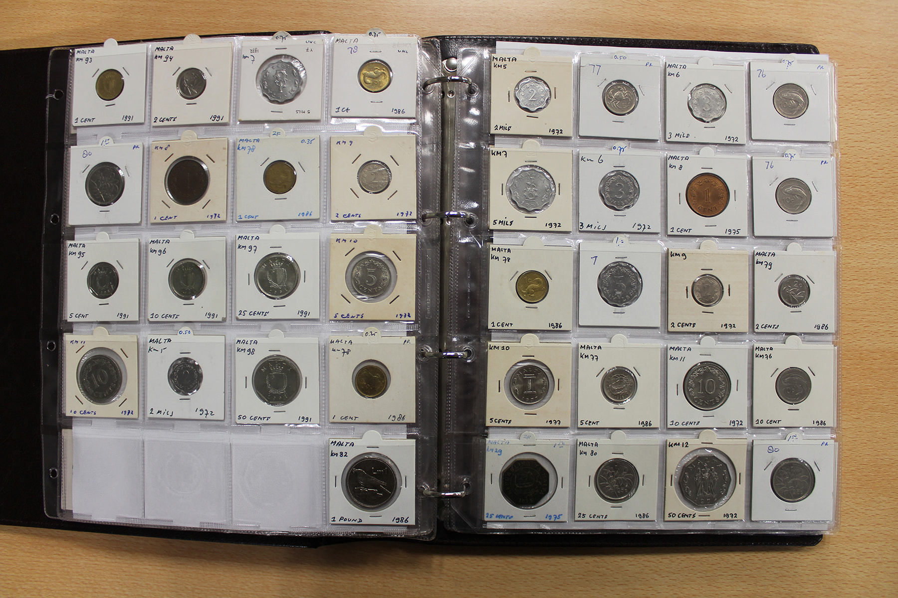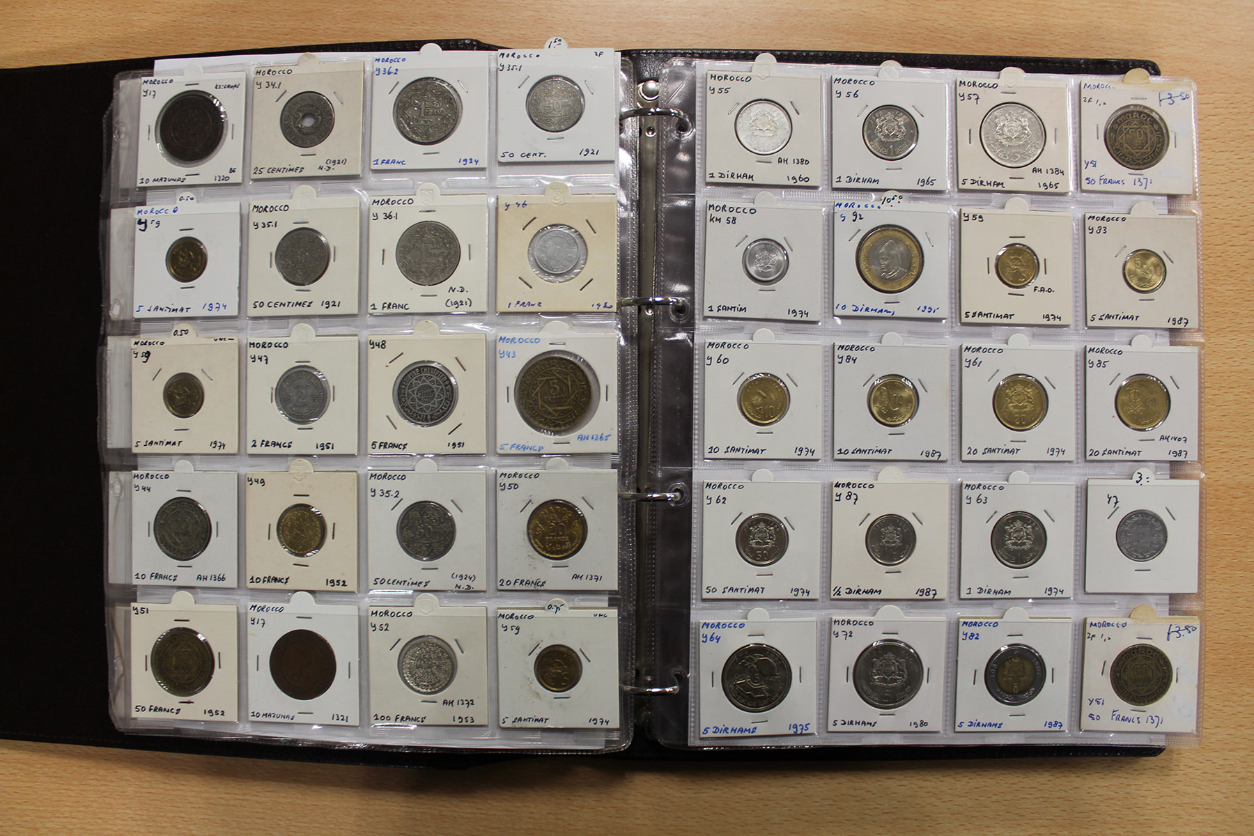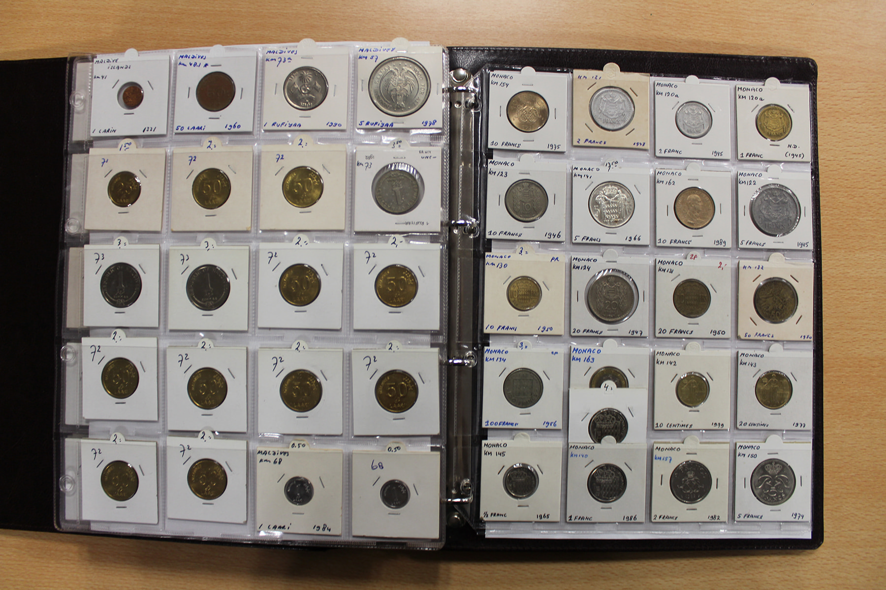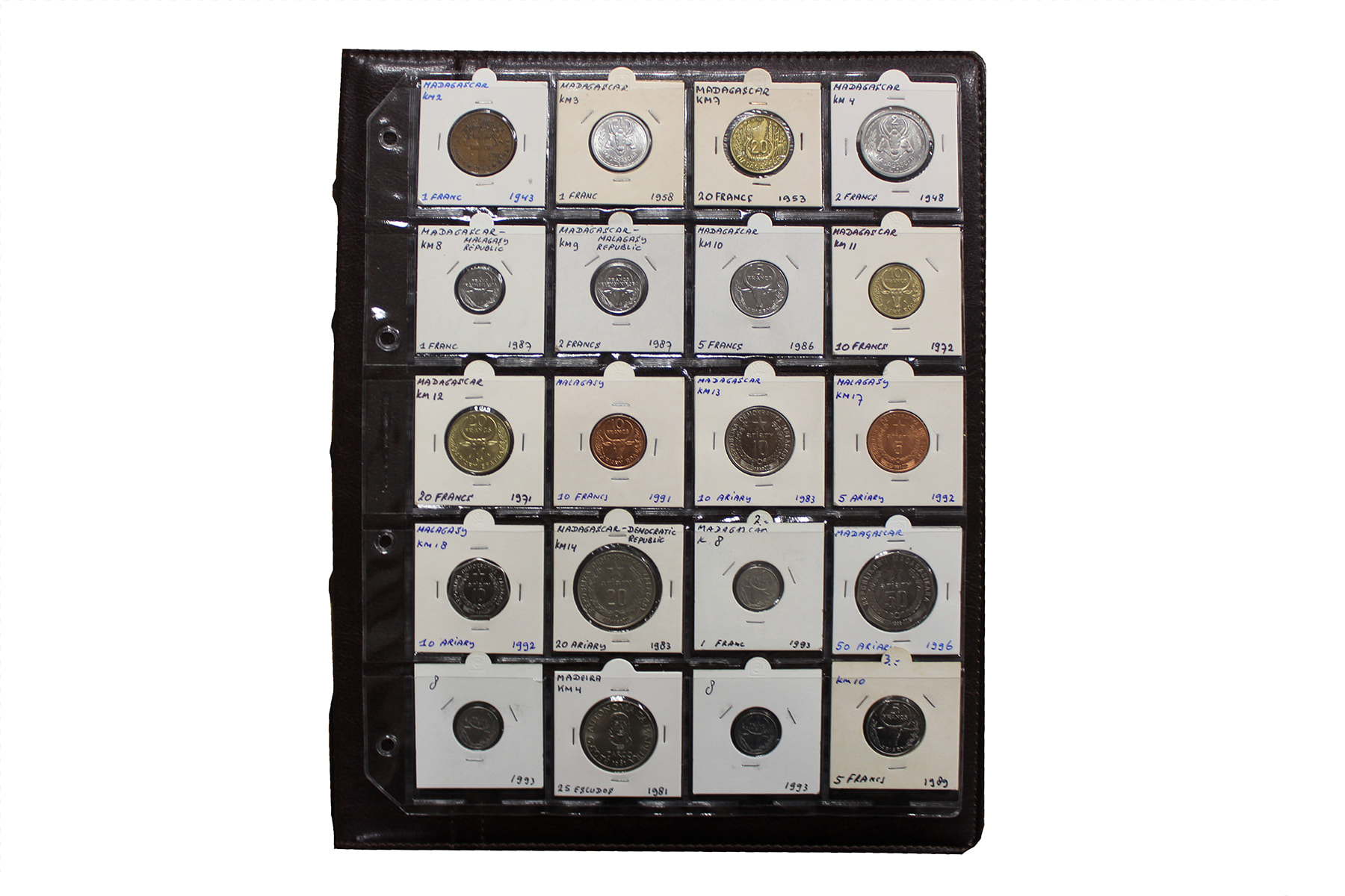 Album wereldmunten met o.a. Madagaskar, Marokko, Malta, Mauritanië, Malediven en Monaco. Ca. 260 stuks.