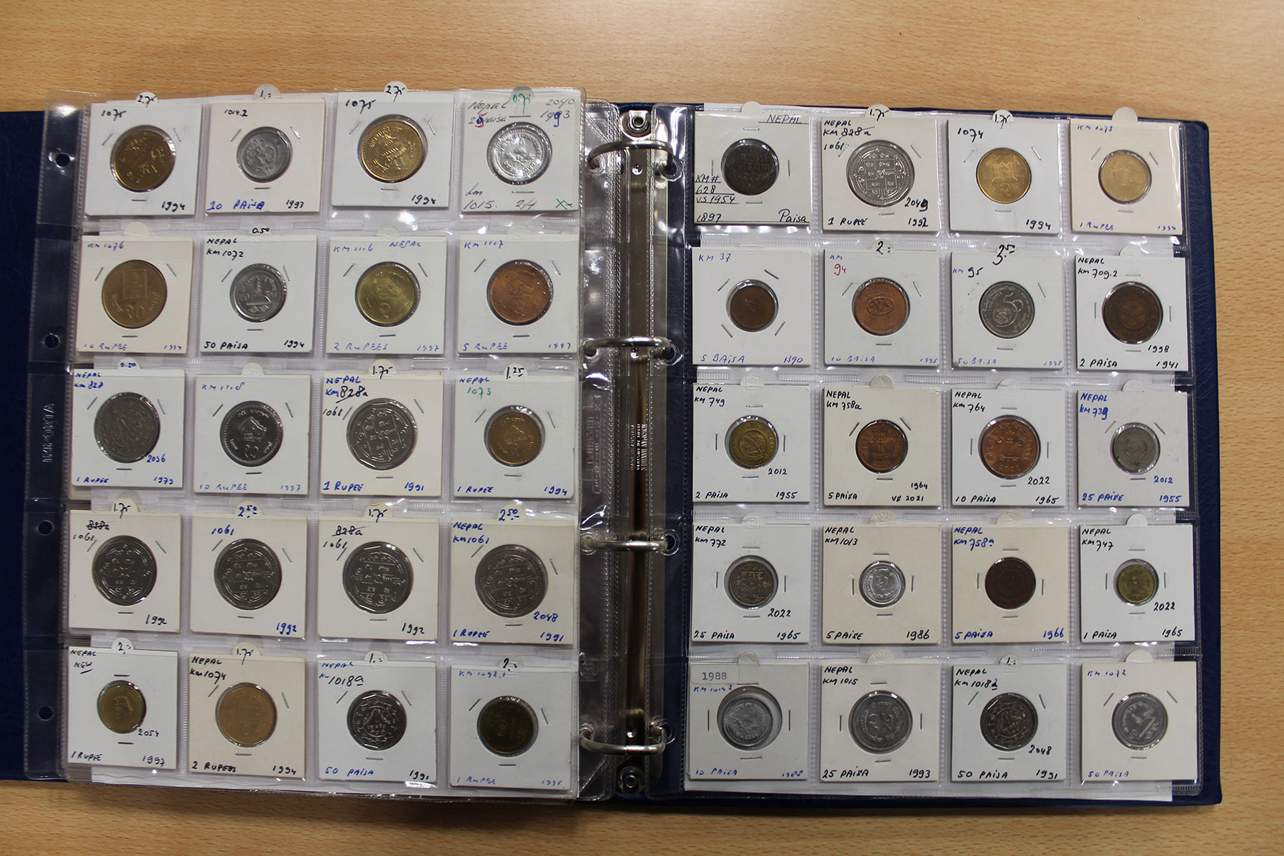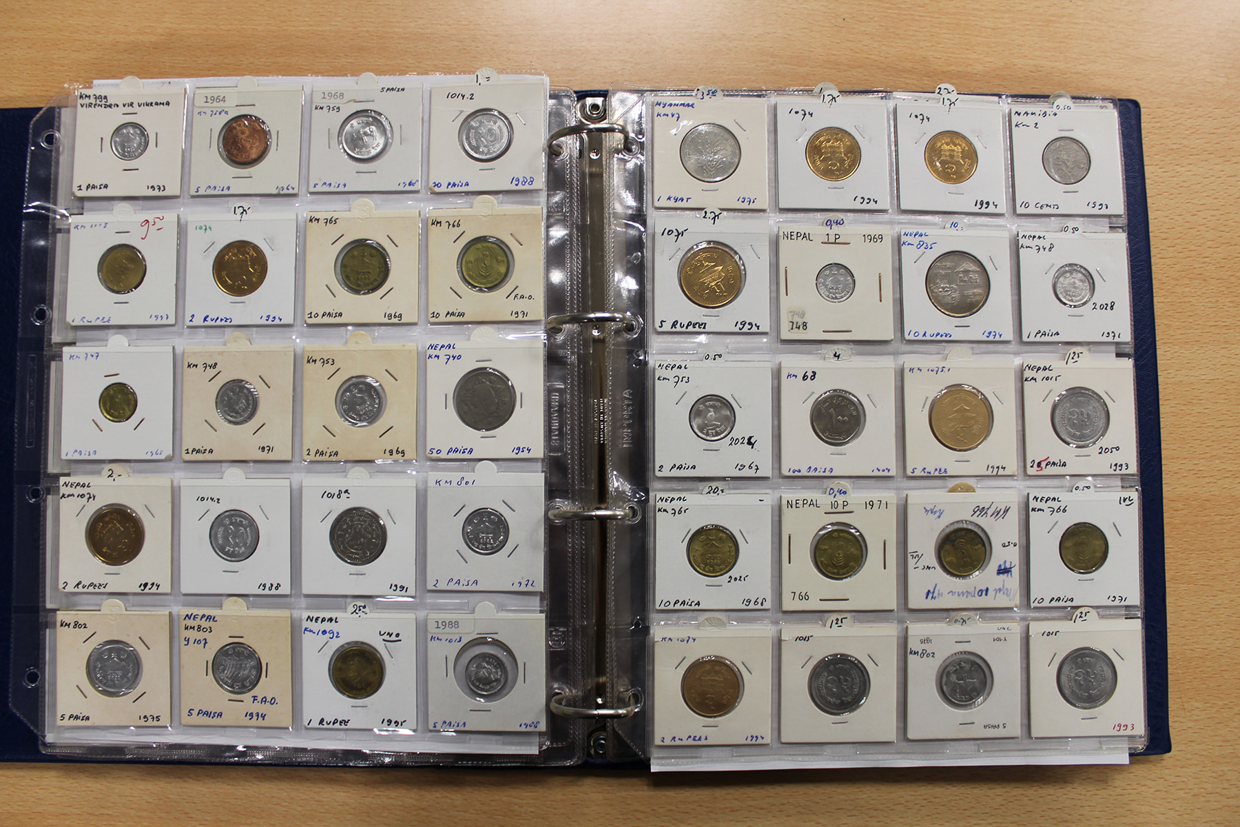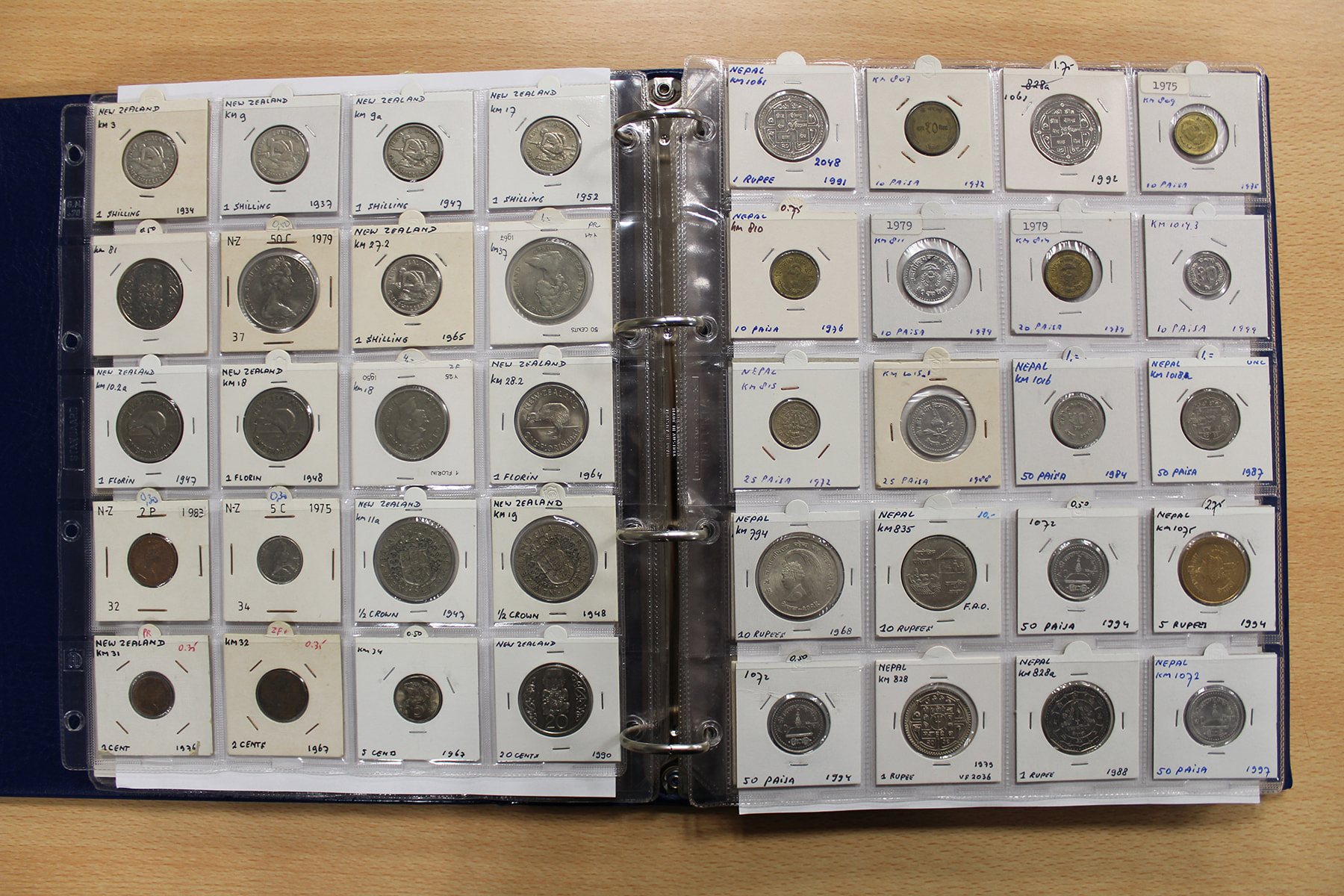 Album wereldmunten met uitsluitend Nepal en Nieuw-Zeeland. Ca. 180 stuks.