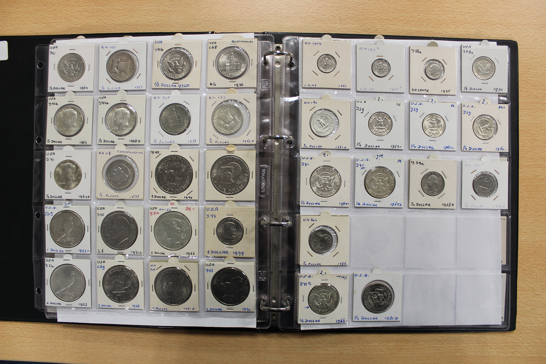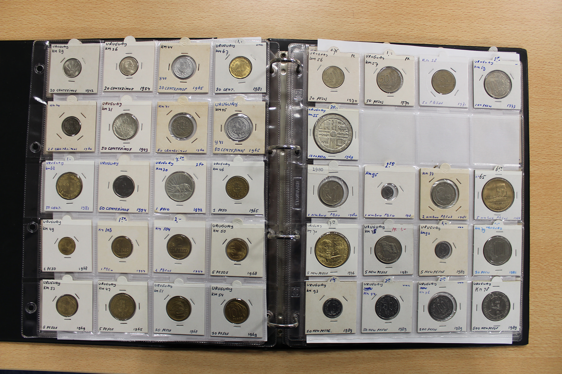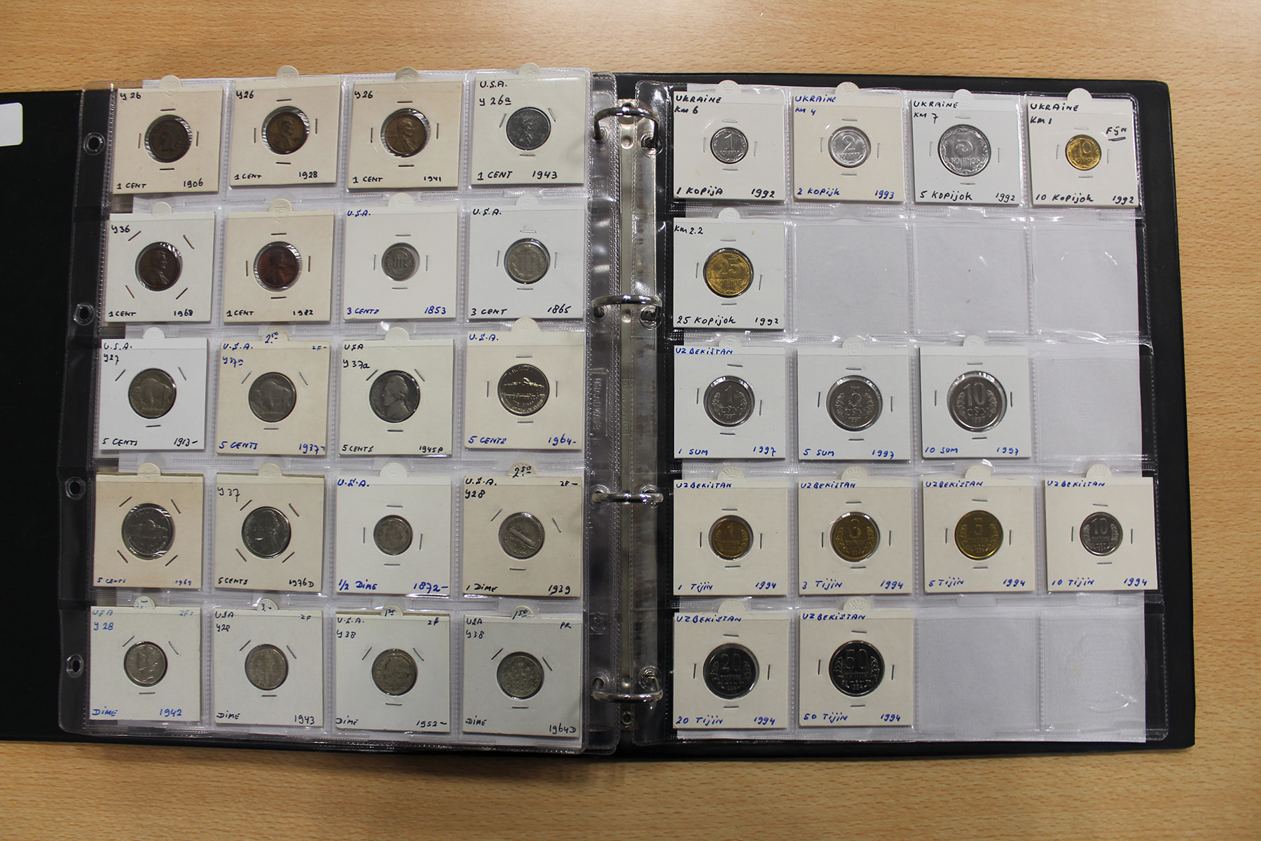 Album wereldmunten met o.a. UAE, Uganda, Uruguay, USA en Oekraïne. Veel zilver. Ca. 145 stuks.