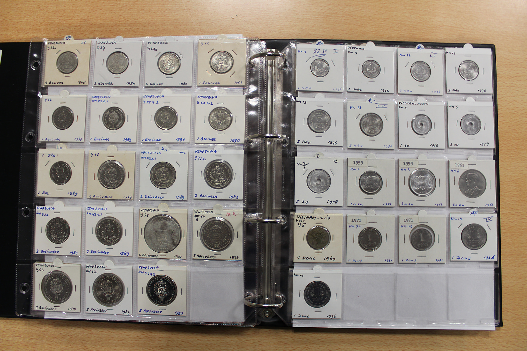 Album wereldmunten met o.a. Vatican, Venezuela, Vietnam en Vanuatu. Ook zilver! Ca. 150 stuks.