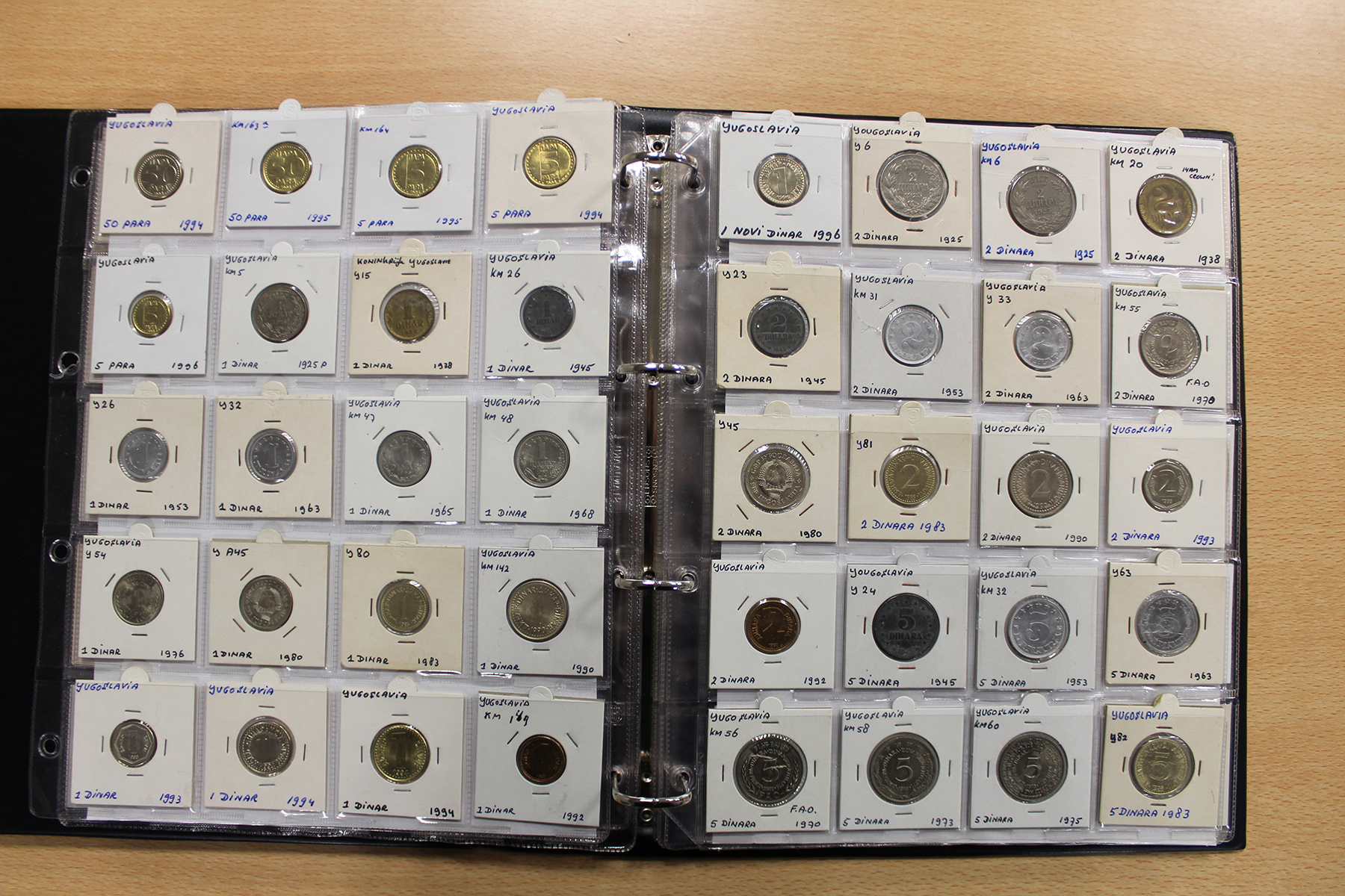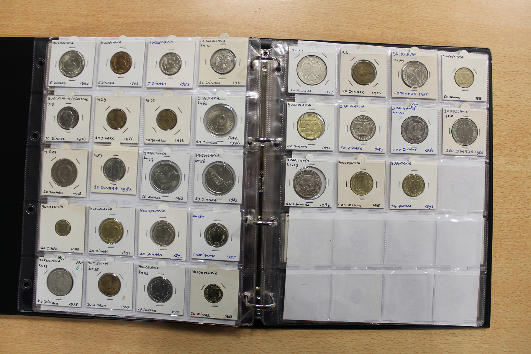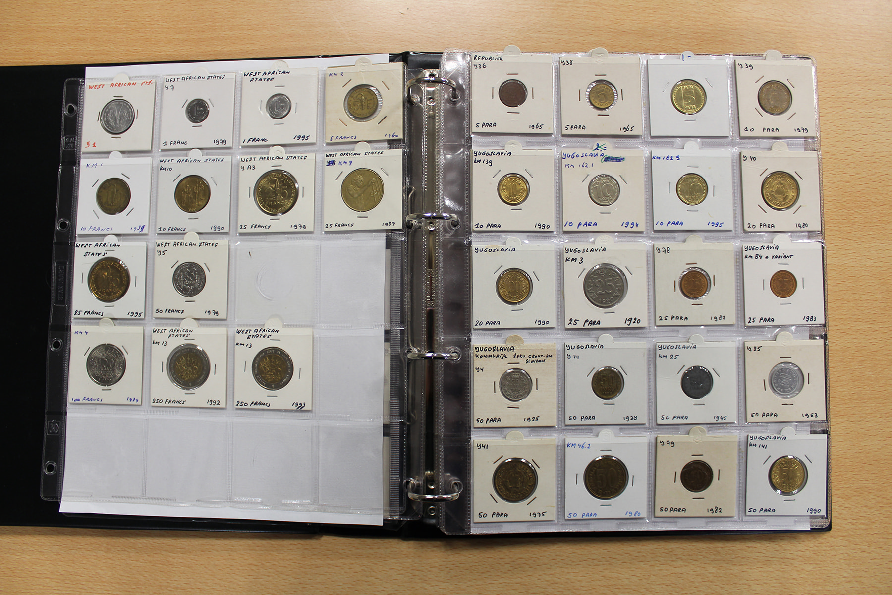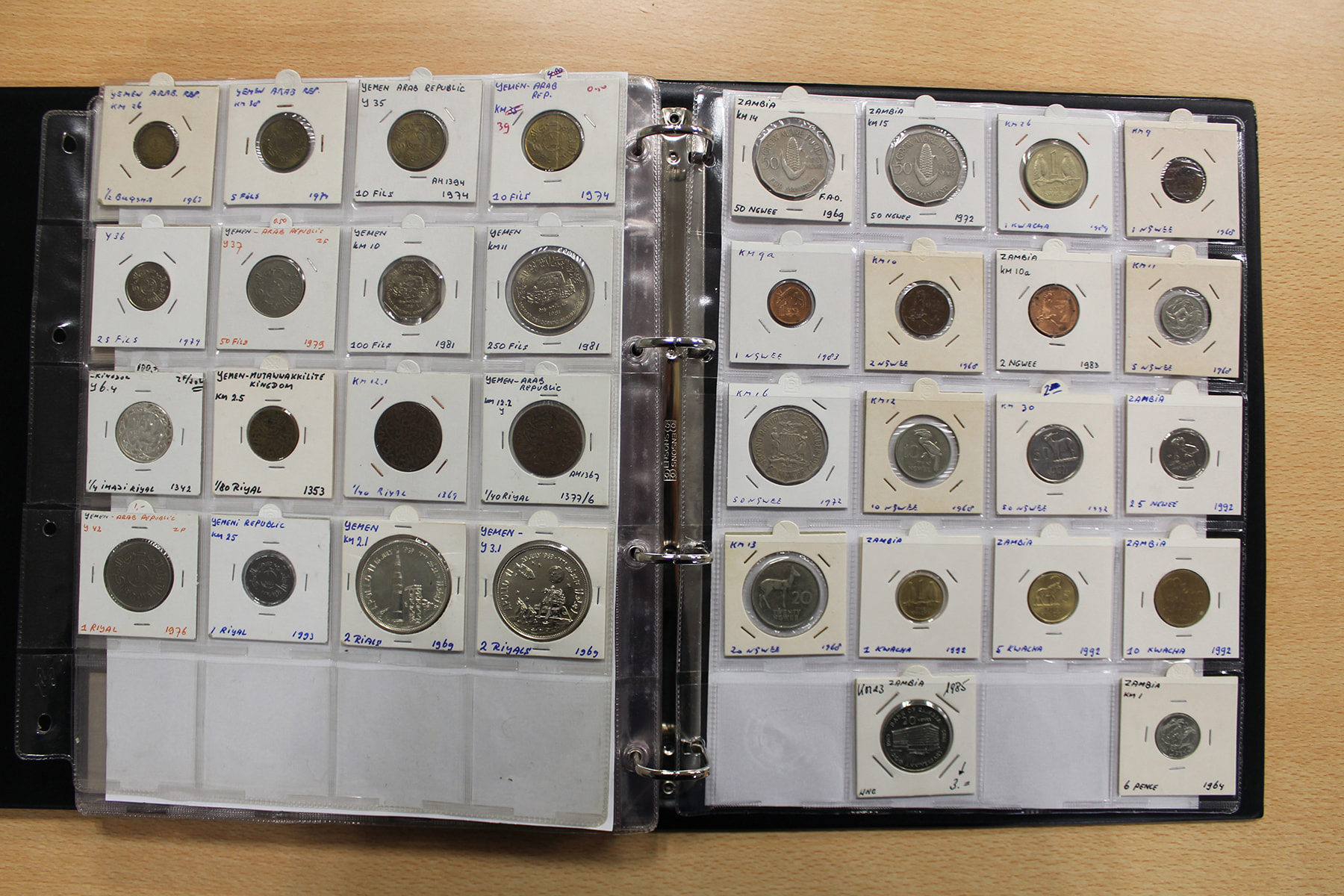 Album wereldmunten met o.a. West-African States, Western Samoa, Yugoslavië, Yemen, Zambia en Zimbabwe. Ca. 155 stuks.