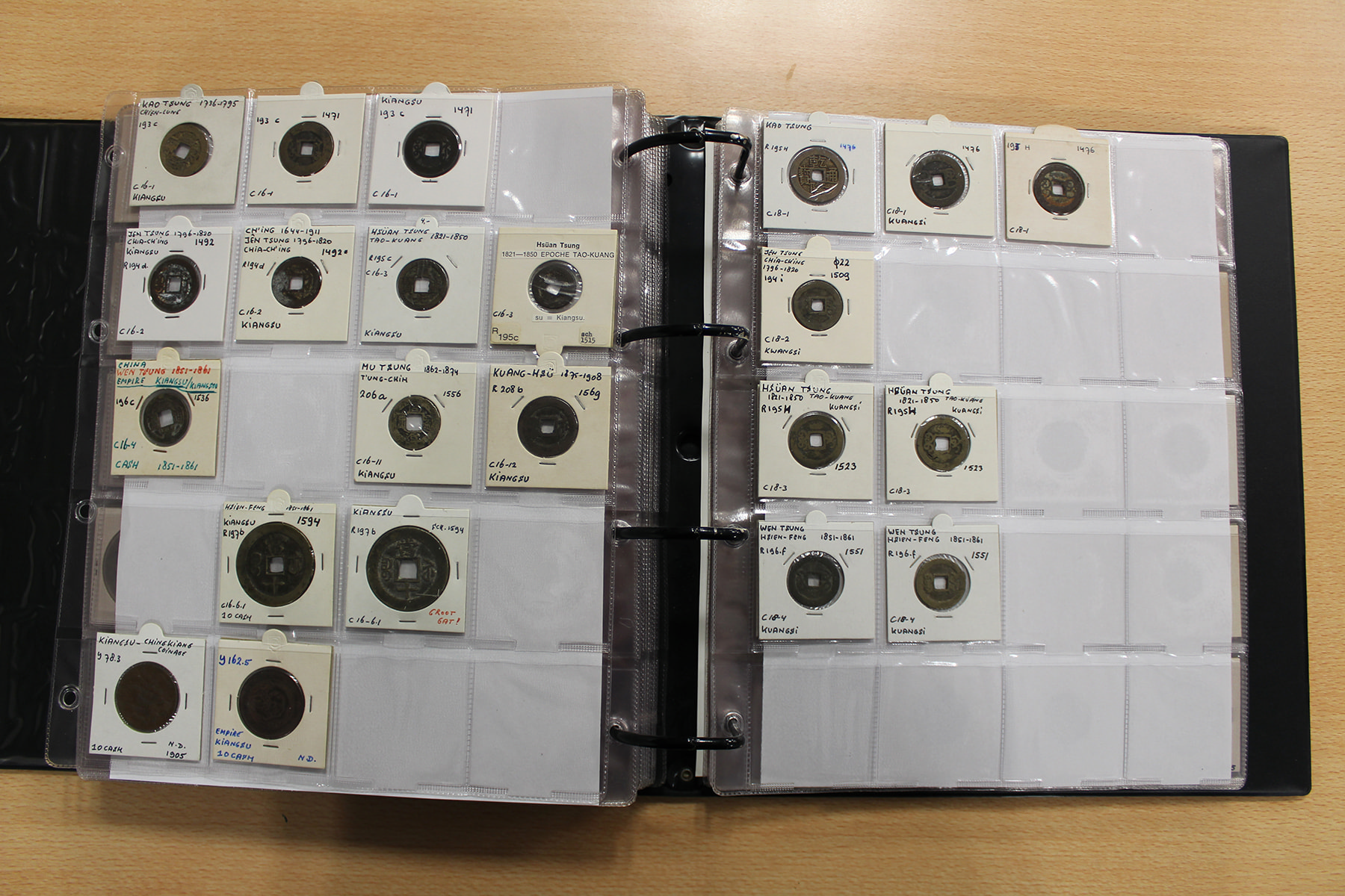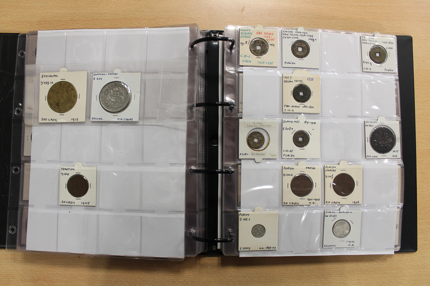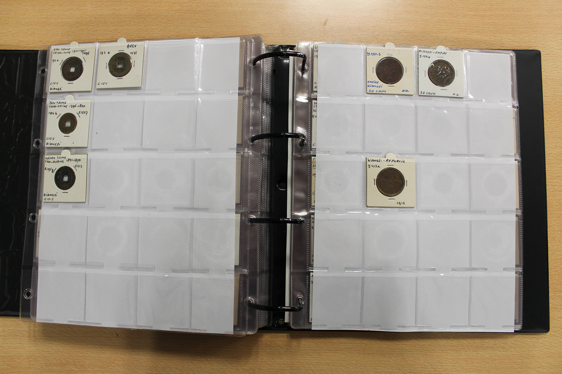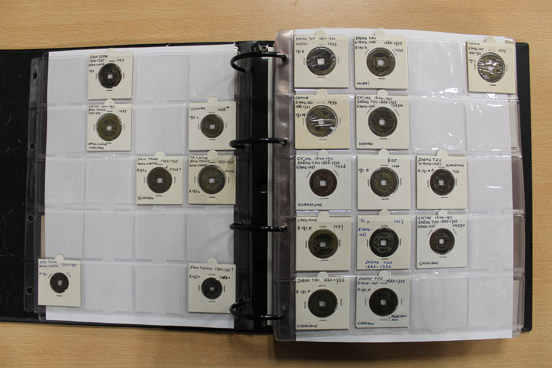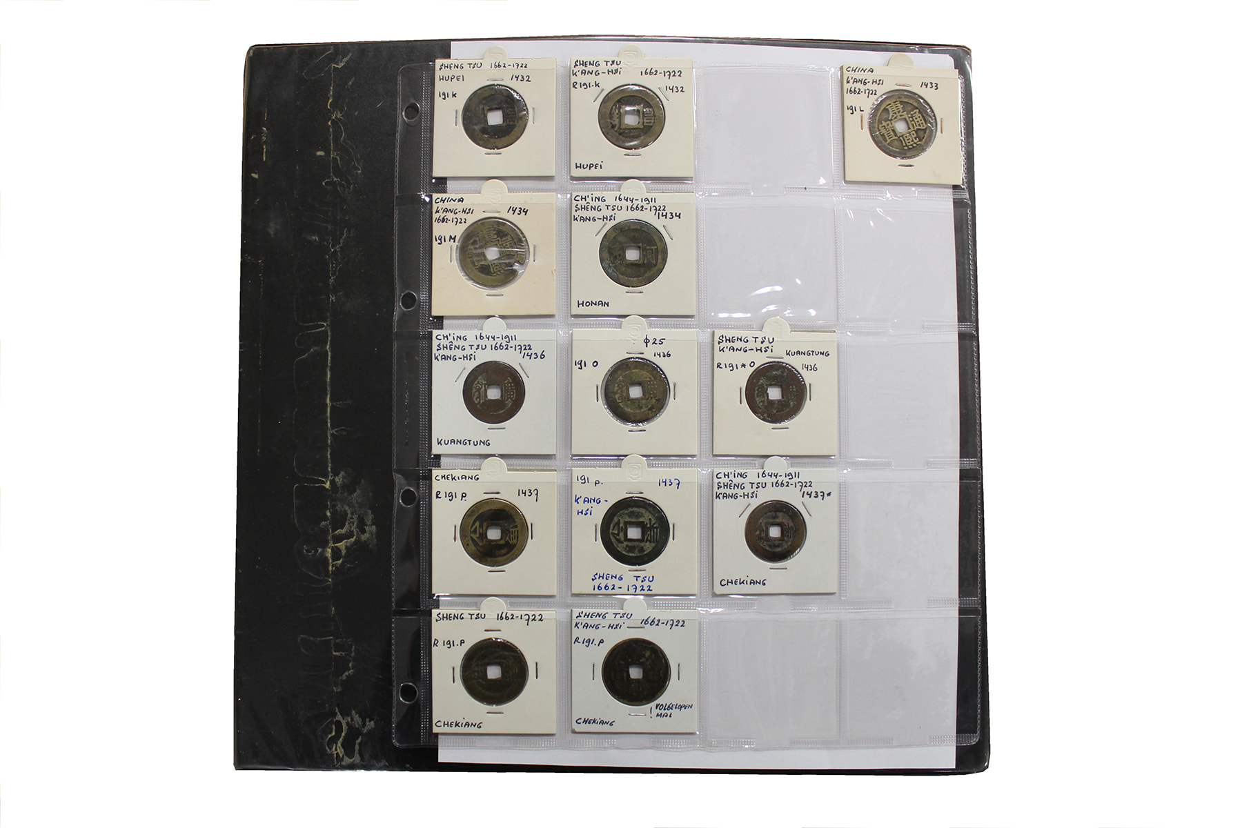 Zwarte ordner met mooie collectie voornamelijk China, compleet bij elkaar gelaten. Voor de China-liefhebber. Ruim 300 stuks.