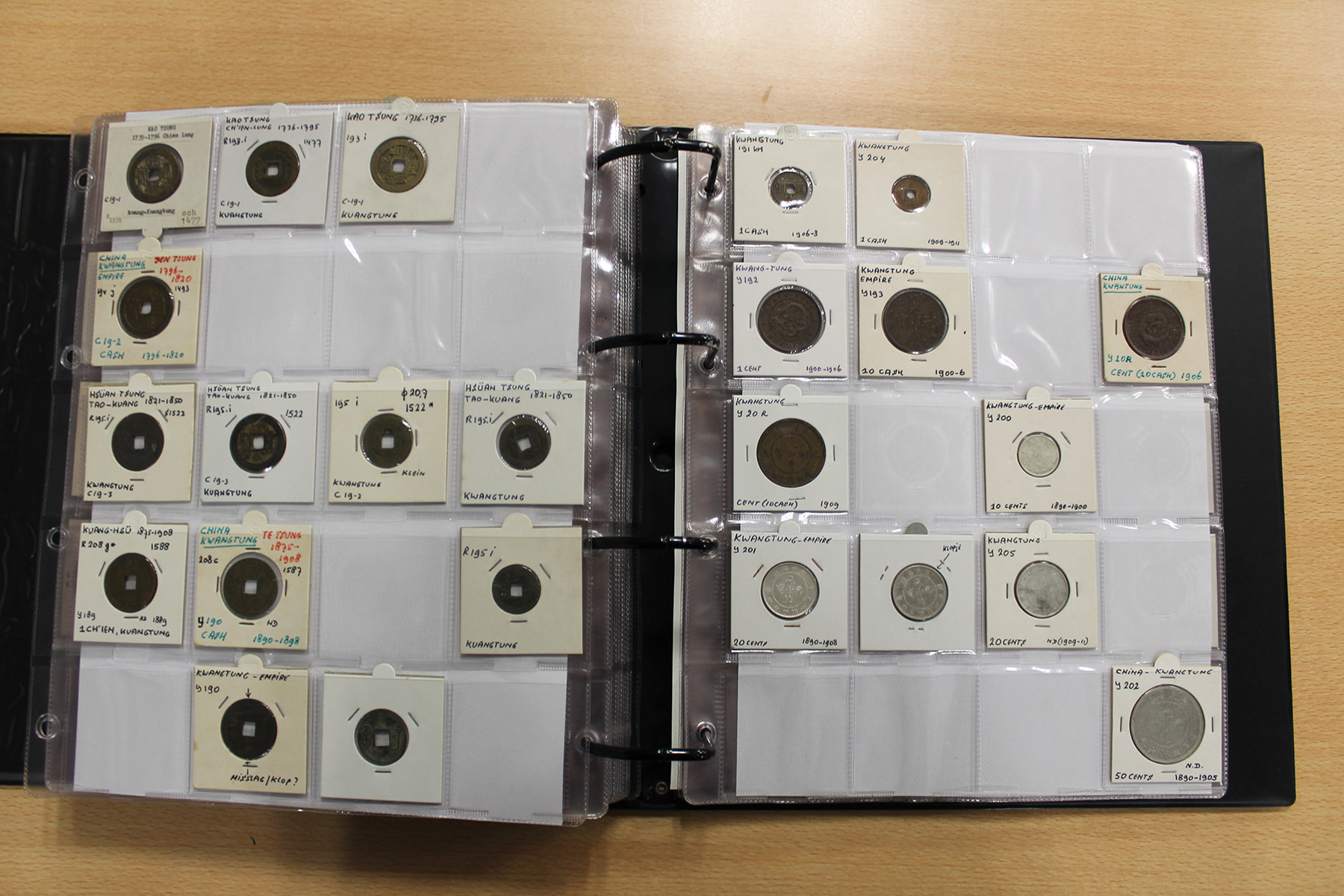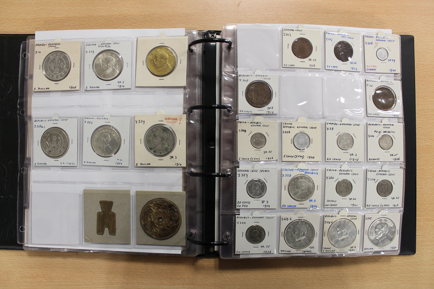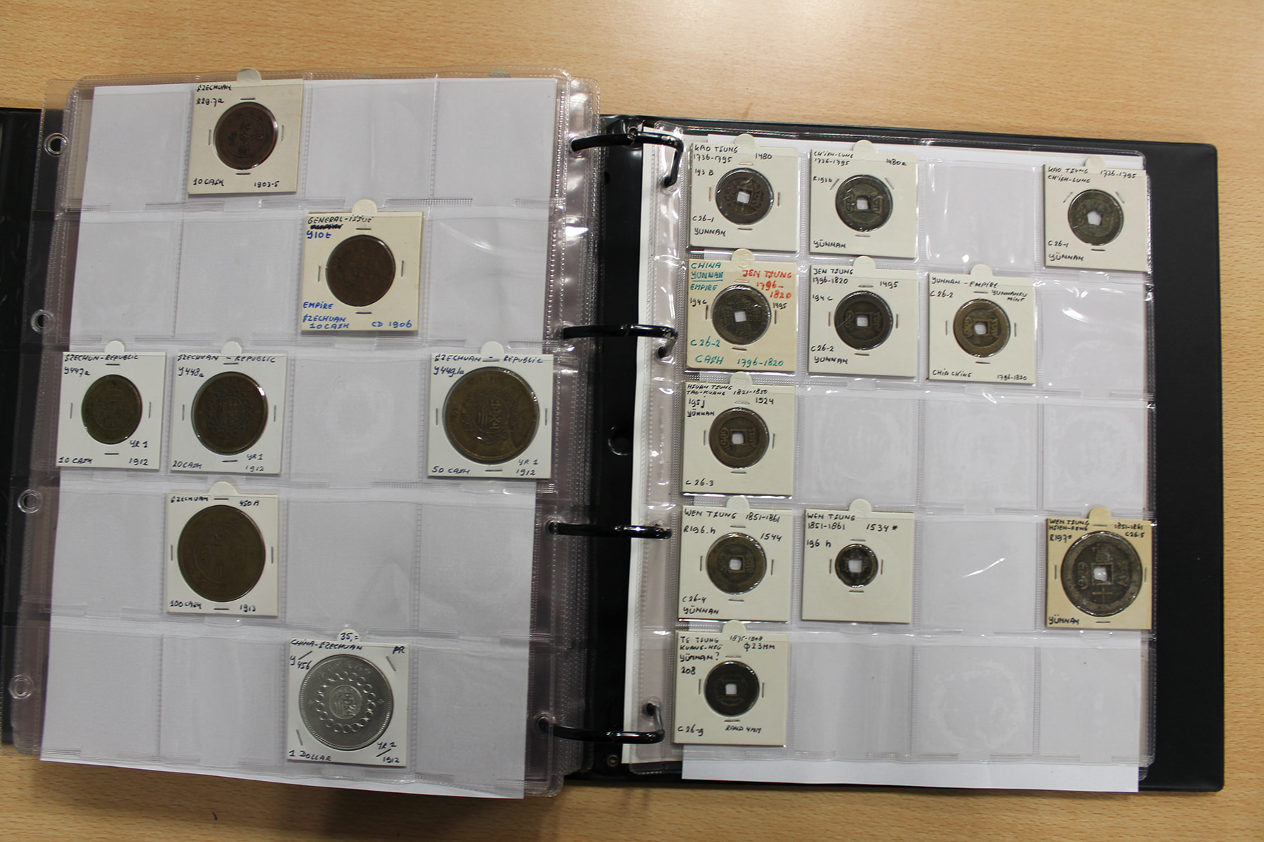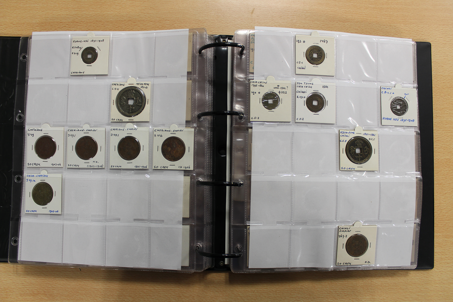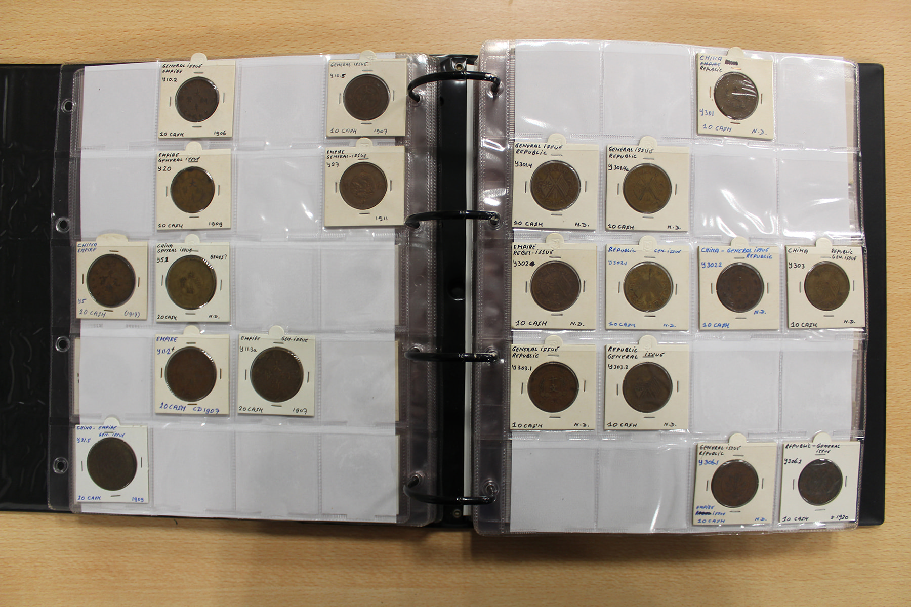Zwarte ordner met mooie collectie voornamelijk China, compleet bij elkaar gelaten. Voor de China-liefhebber. Ruim 300 stuks.