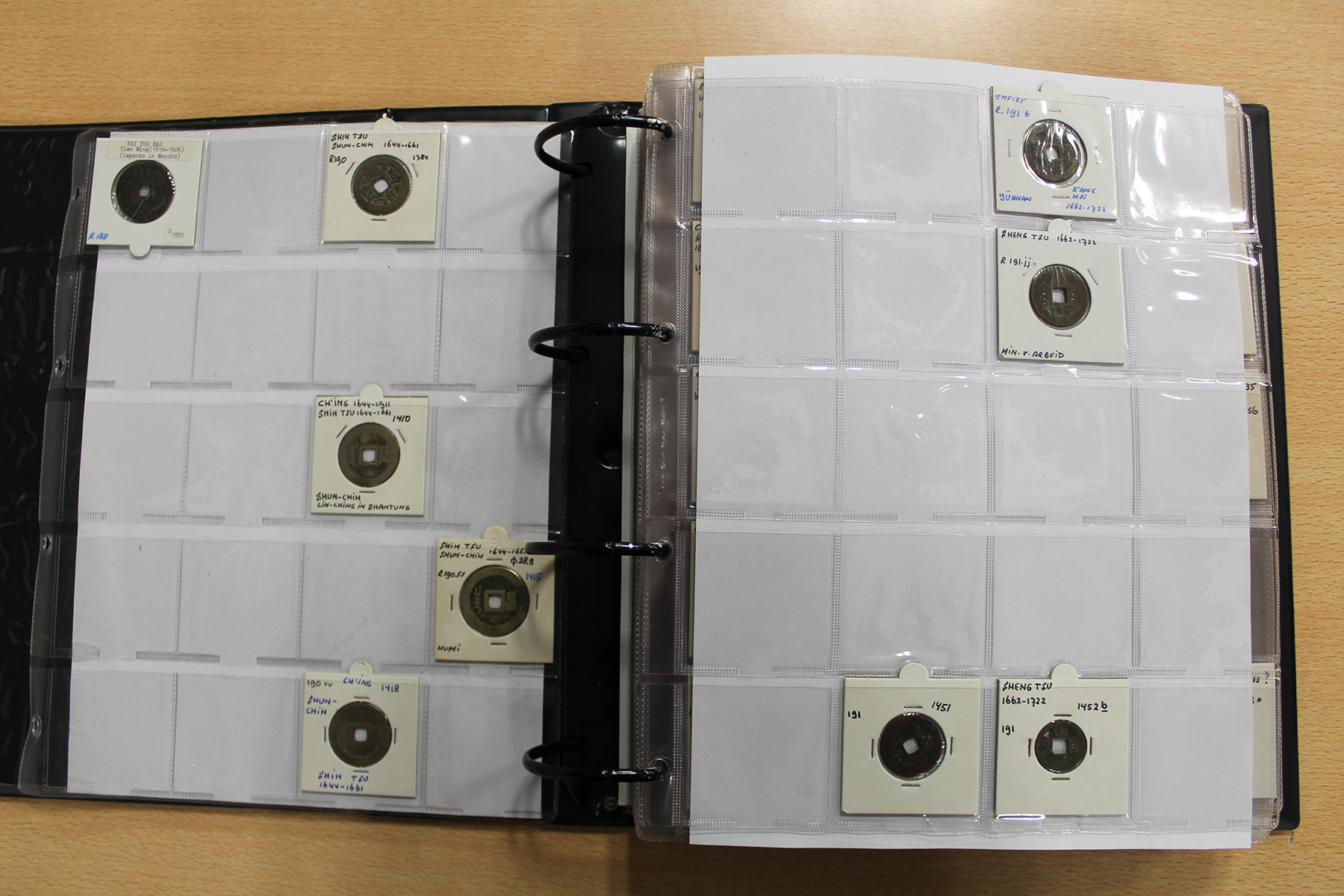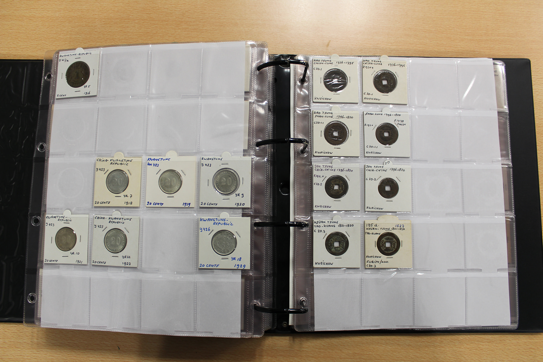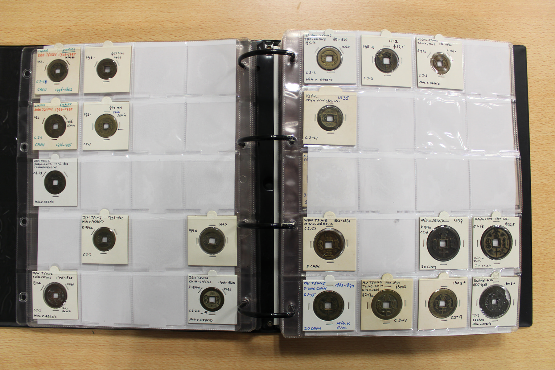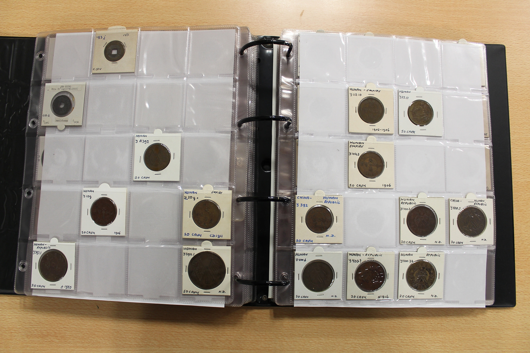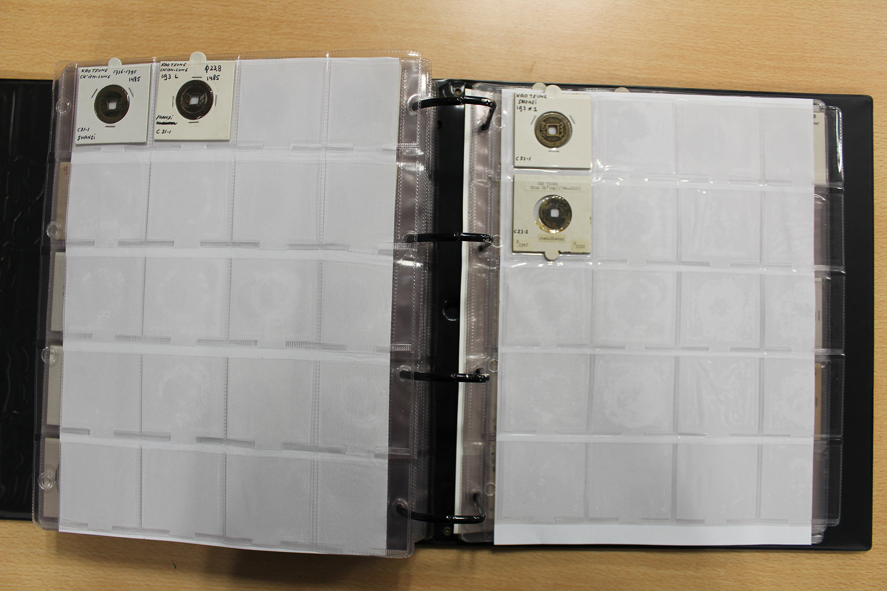 Zwarte ordner met mooie collectie voornamelijk China, compleet bij elkaar gelaten. Voor de China-liefhebber. Ruim 300 stuks.