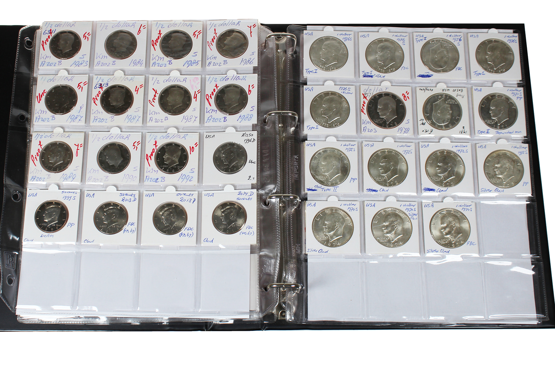 Groen Importa-album USA, 1 cent t/m 1 dollar. Uitstekende kwaliteiten. Veel proof en ietsje zilver.