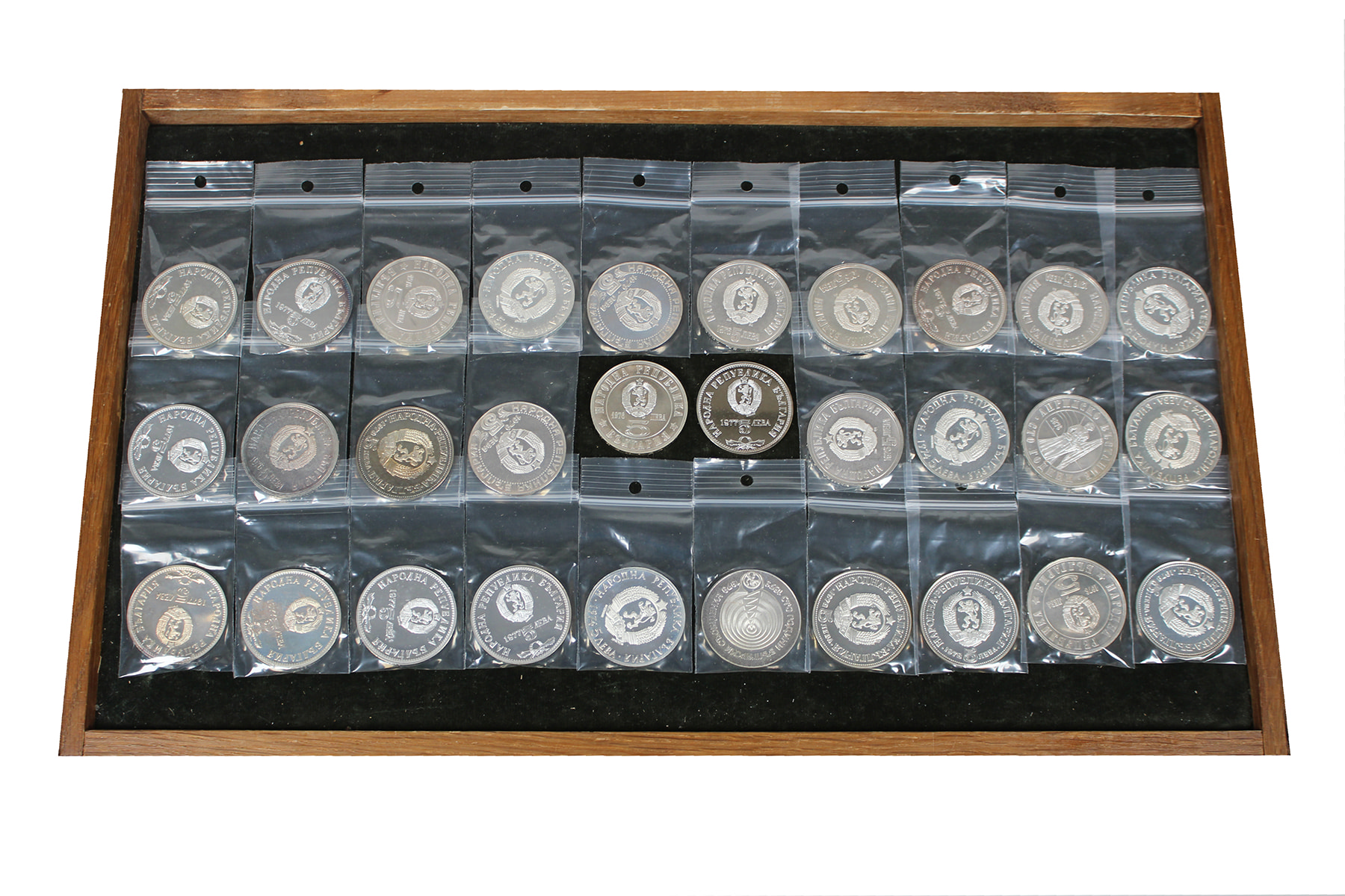 Bulgaria, lot (30), 5 Leva 1974-1979. KM 91, 96, 97, 99, 100, 103. Proof. Net silver: 380 gr.