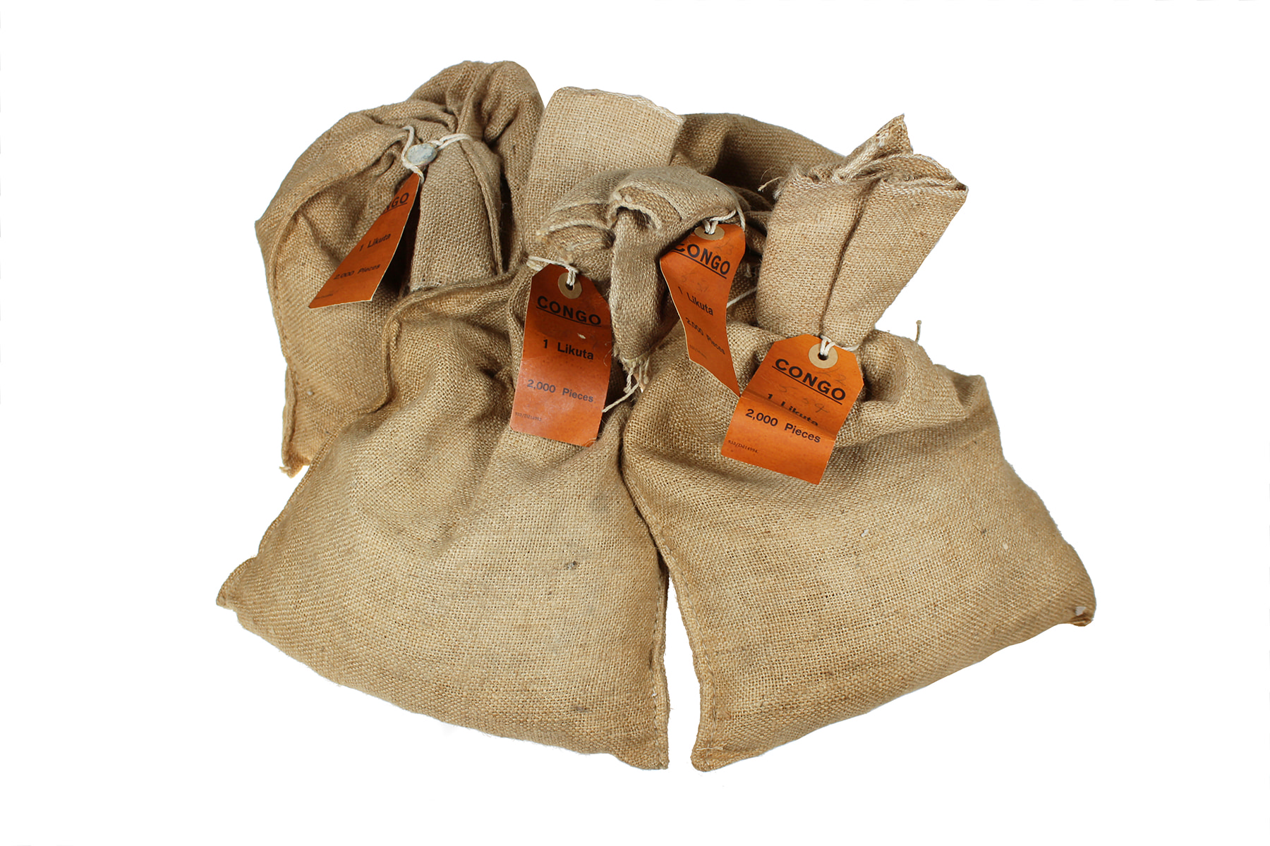 Congo, Dem. Rep., Likuta 1967 in four burlap bags. KM 8 (8000 pcs.). Unc.