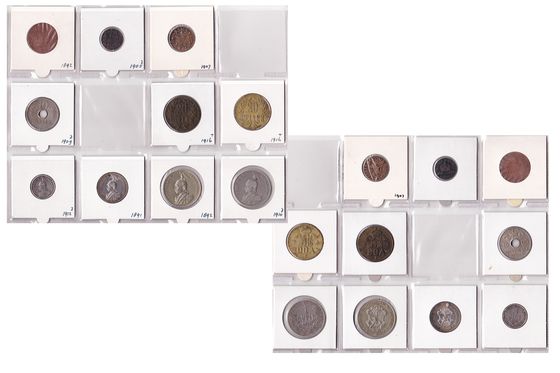 Duits-Oost-Afrika (10), Blikje met ½ Heller t/m 1 Rupie. Gemiddelde kwaliteiten.