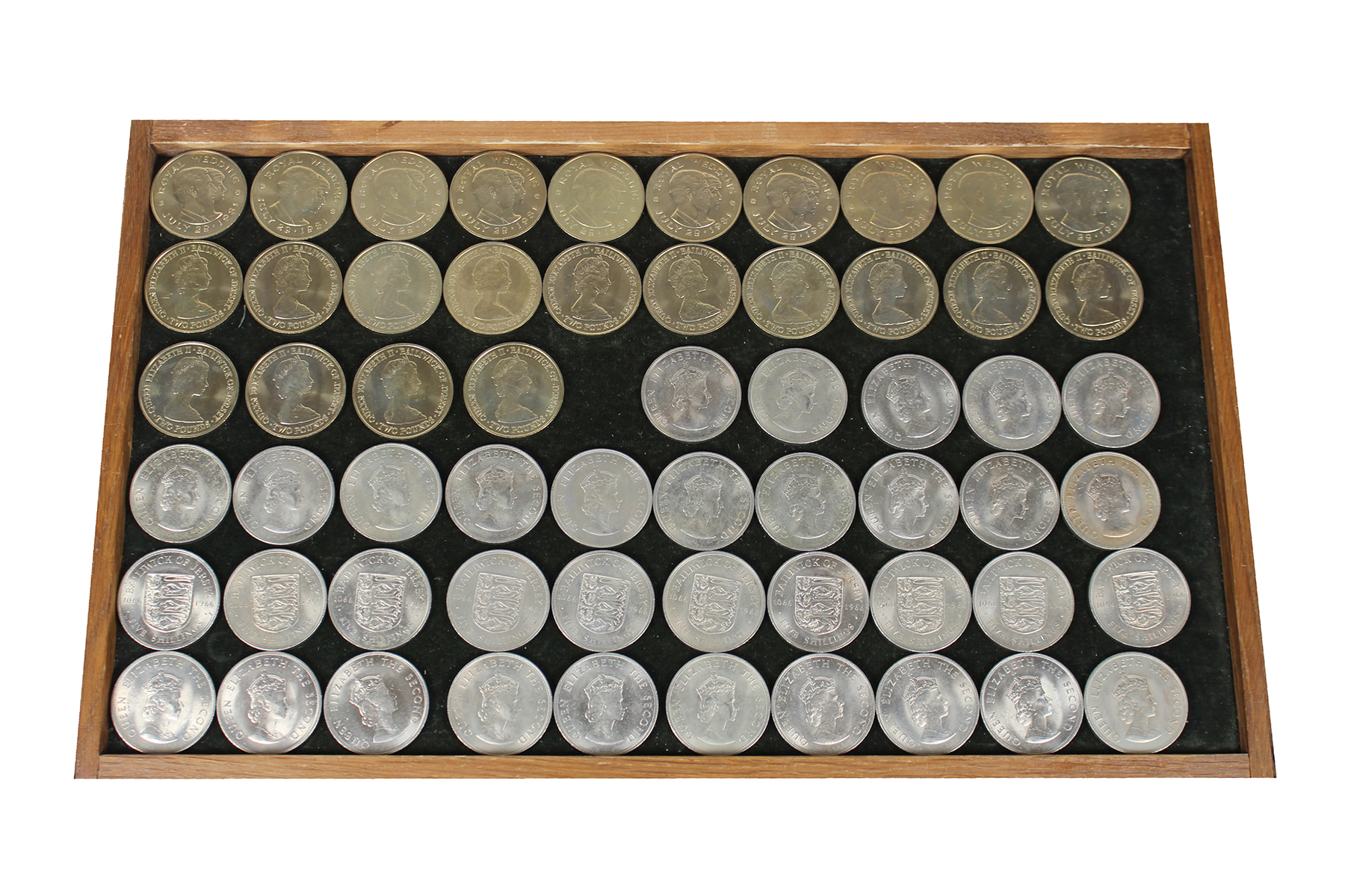 Jersey, lot (59), 5 Shillings 1966 Norman Conquest (KM 28; 35x) & 2 Pounds 1981 Royal Wedding (KM 52; 24x). Unc.