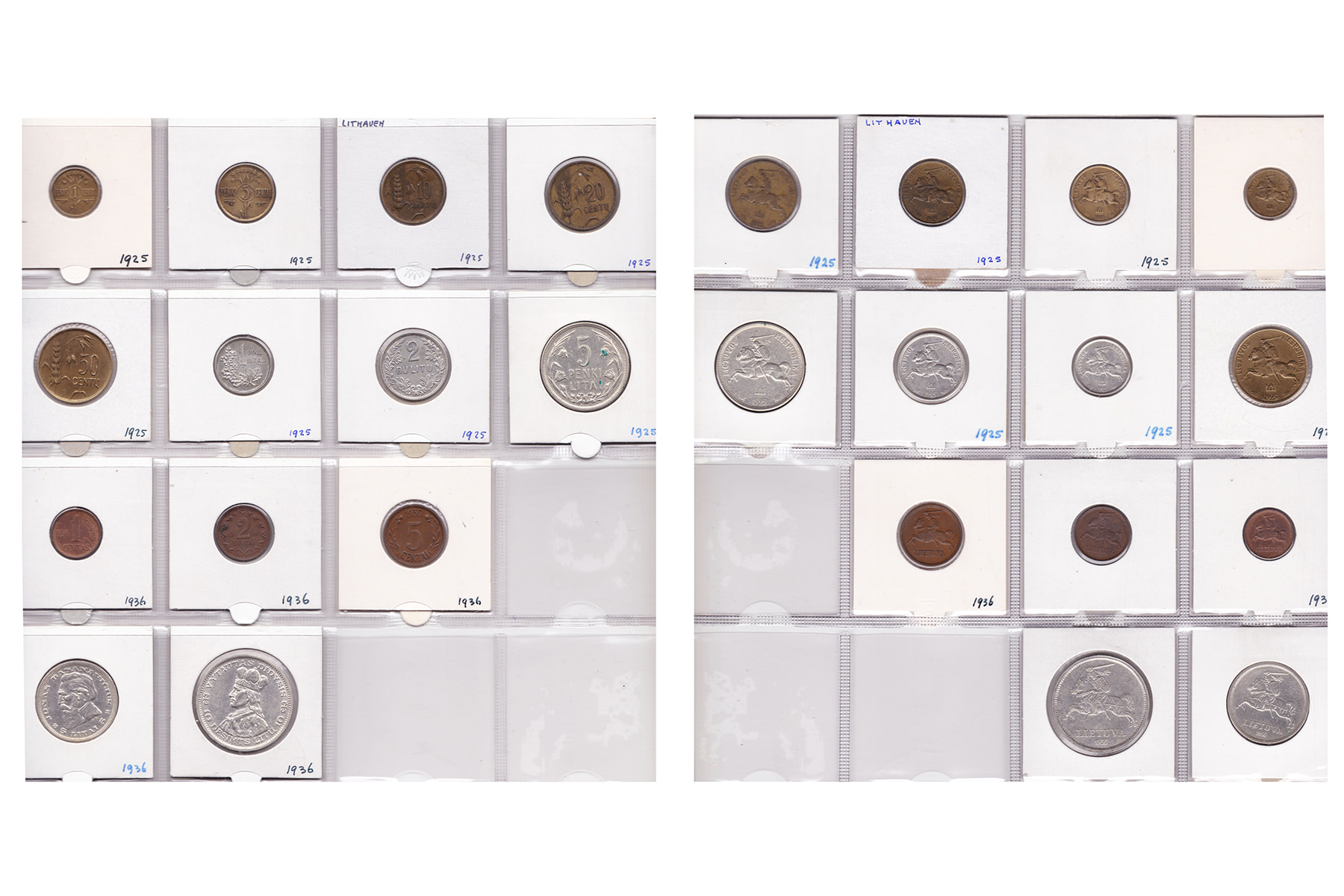 Litouwen (13). Blikje met diverse munten 20e eeuw waaronder zilveren. Gemiddelde kwaliteiten.