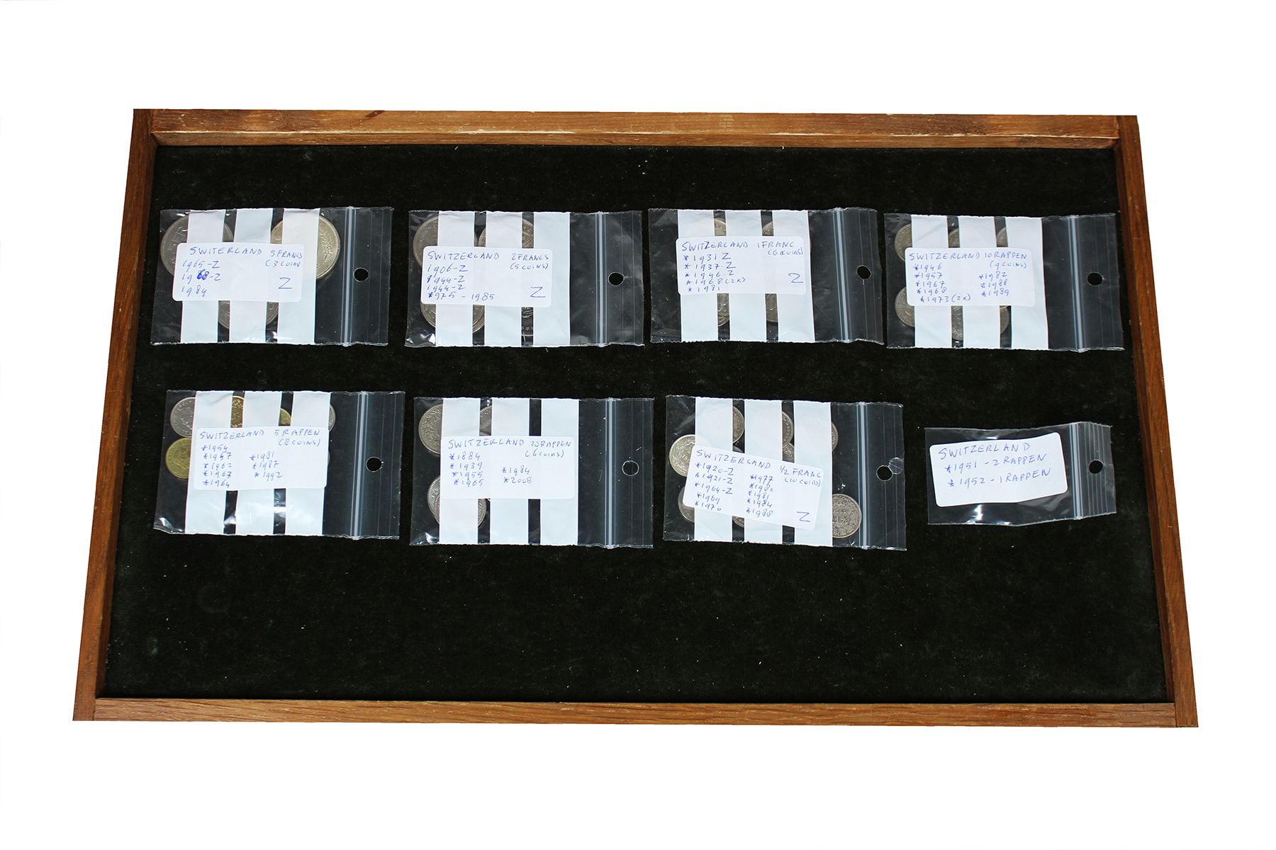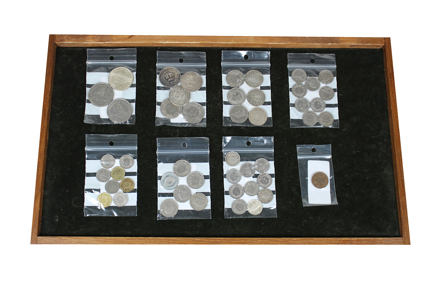 Zwitserland. Doosje met munten Zwitserland waaronder diverse zilveren munten.