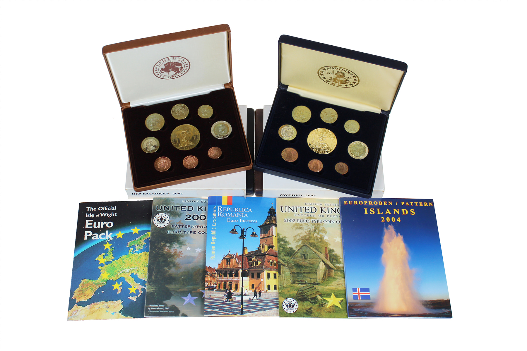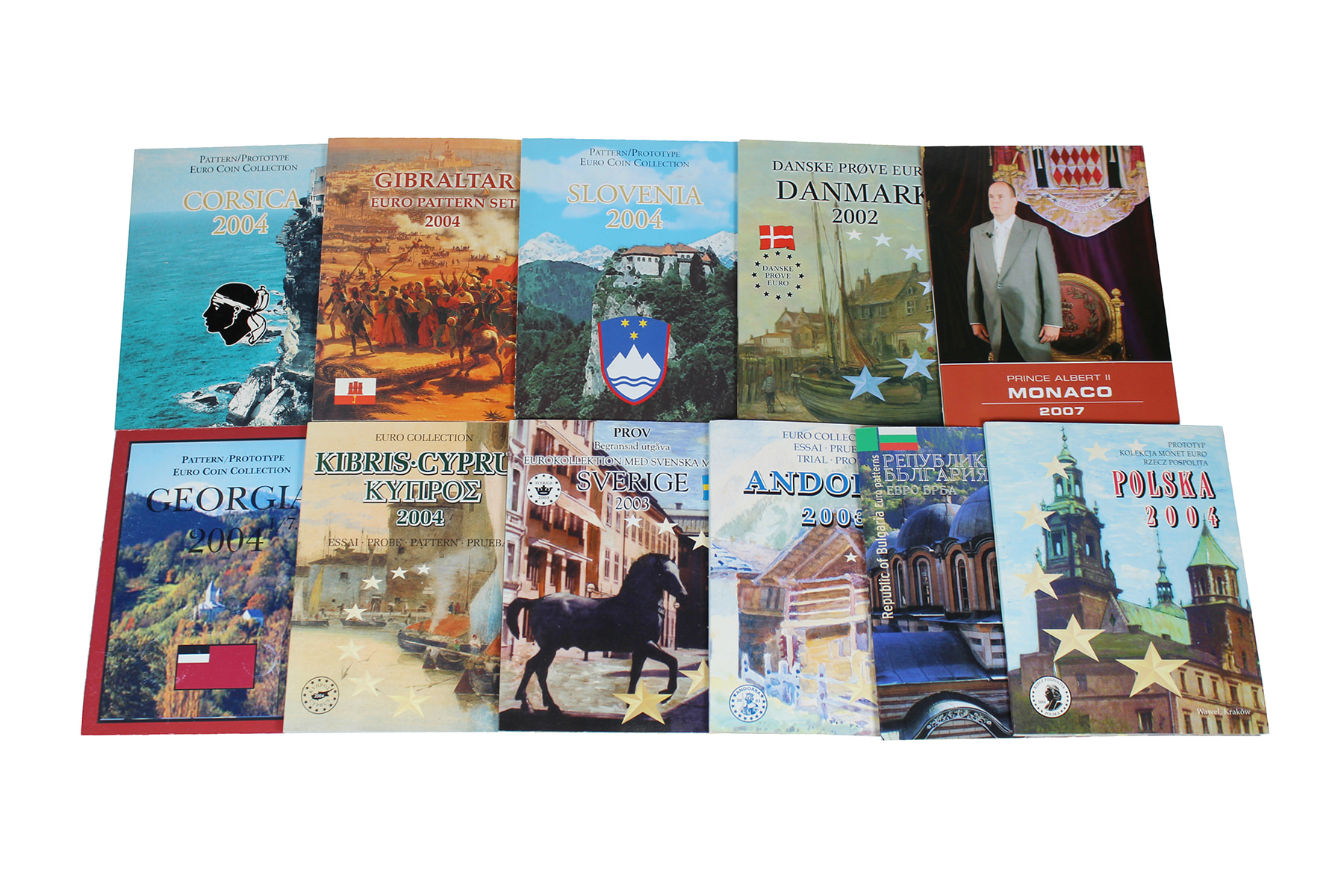 Groot lot ‘pseudo’-uitgiften van eurosets uit diverse landen. Vrijwel alle verschillend, zogenaamde patterns. Ca. 20 stuks.