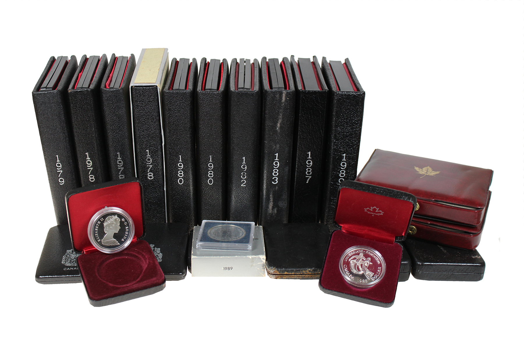 Doos Canada; proof- en unc sets + zilveren herdenkingsdollars.
