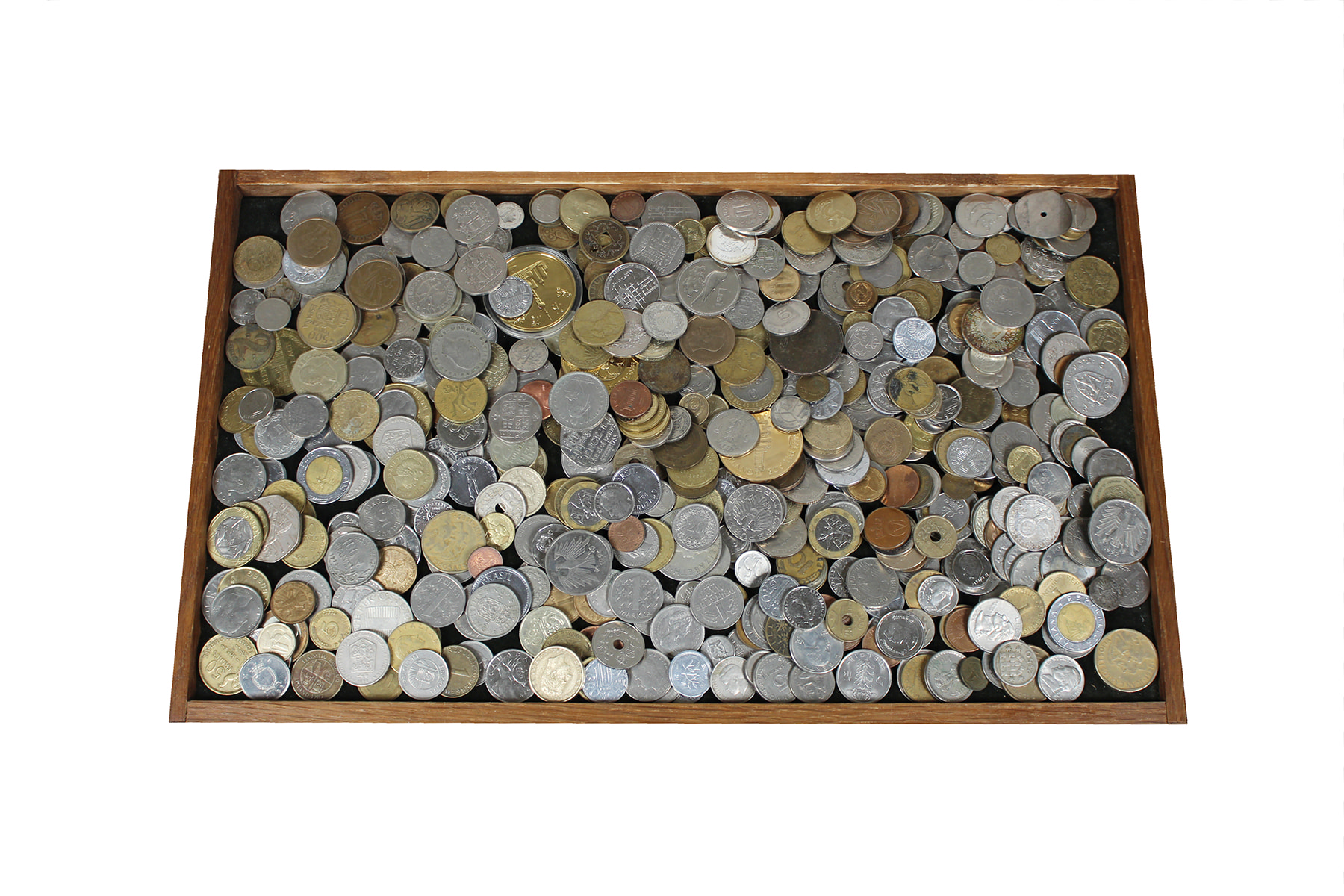 Plastic bakje met eenvoudig buitenland, wereld. Deels nog inwisselbaar, voornamelijk kilogoed. Bijna 2,5 kg.
