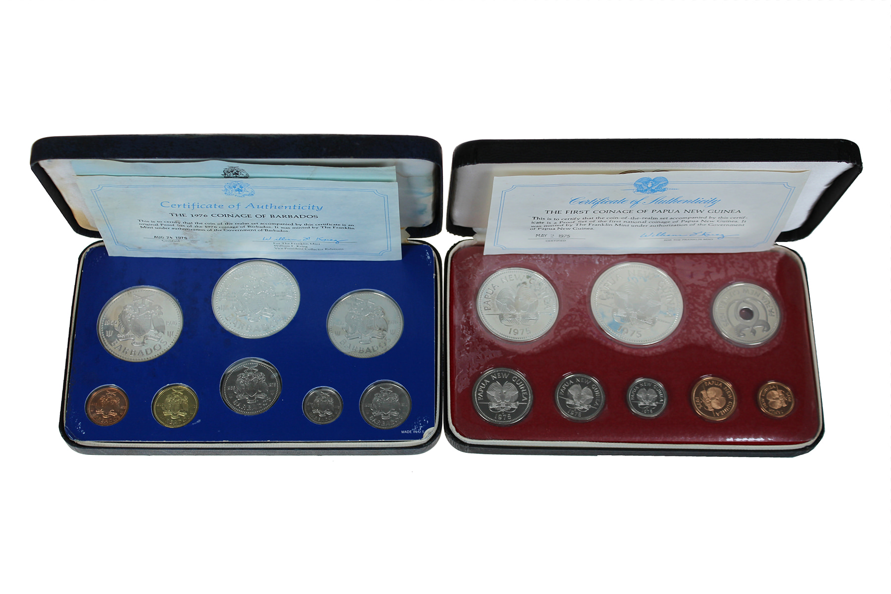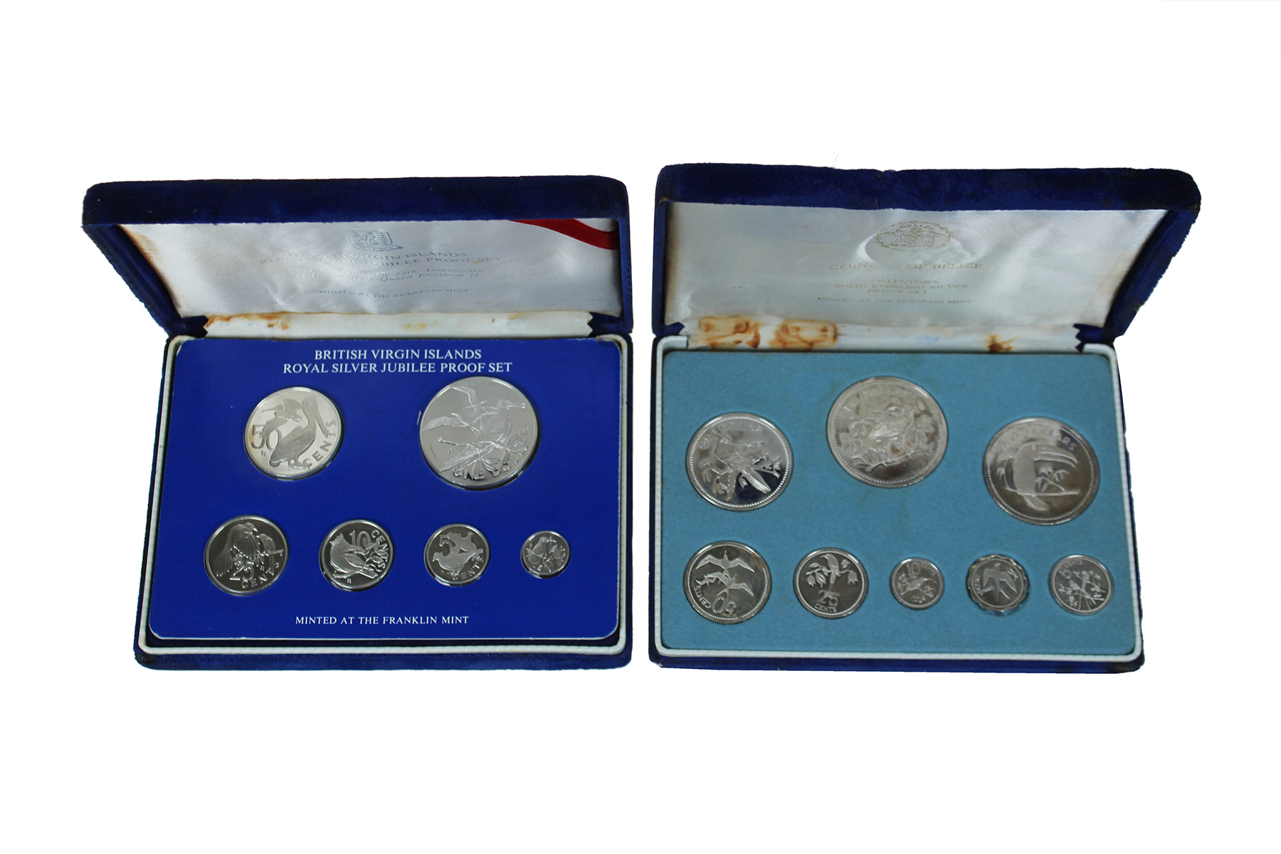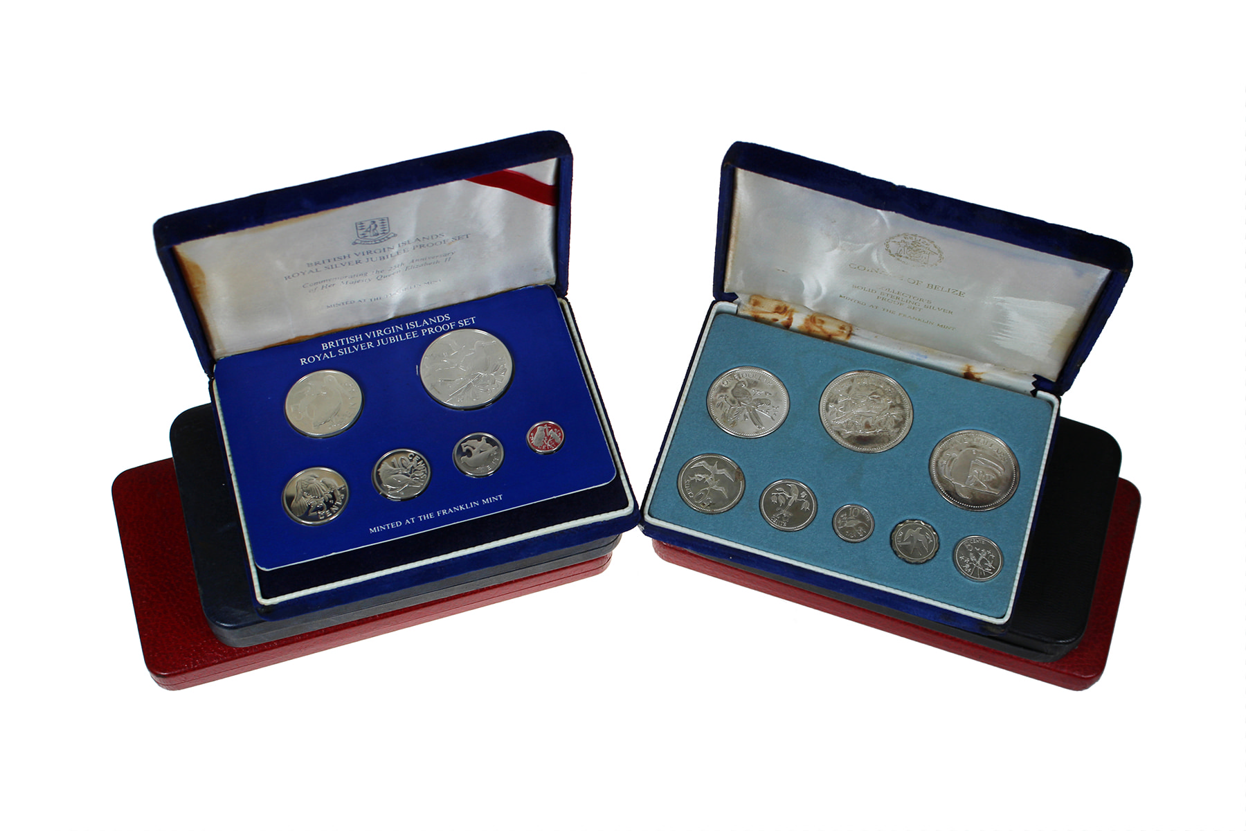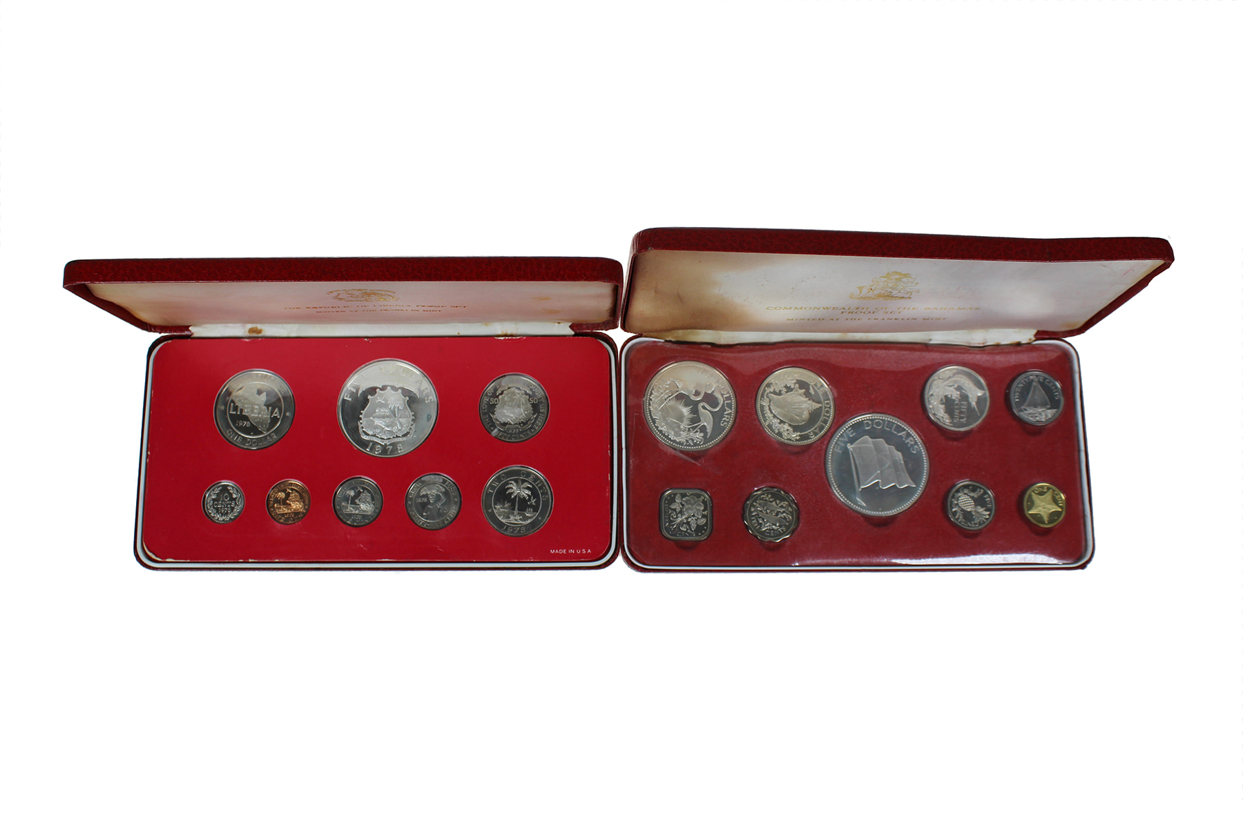 Doos met 6 ‘Franklin-mint’ proofsets diverse landen, met zilver.