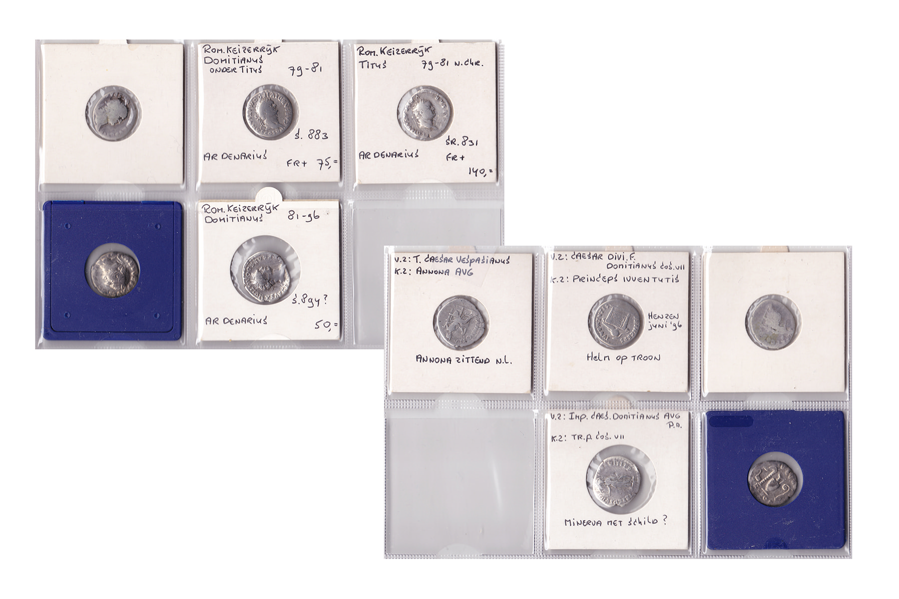Lot (5) Imperial Flavian Denarii. Vespasian, Titus (2) and Domitian (2). Fairly worn, though all clearly identifiable. Better types for Titus.