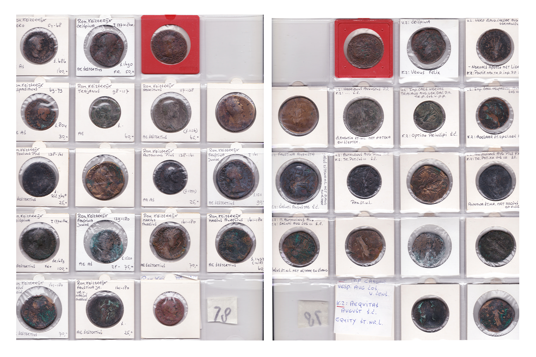 Lot (18) Imperial bronzes, mostly Asses and Sestertii, from the 1/2nd century AD; Germanicus, Nero, Vespasianus (2), Trajanus, Hadrianus (2), Antoninus Pius (3), Faustina (3), Marcus Aurelius (3) and Crispina. Mostly worn, but an interesting selection.
