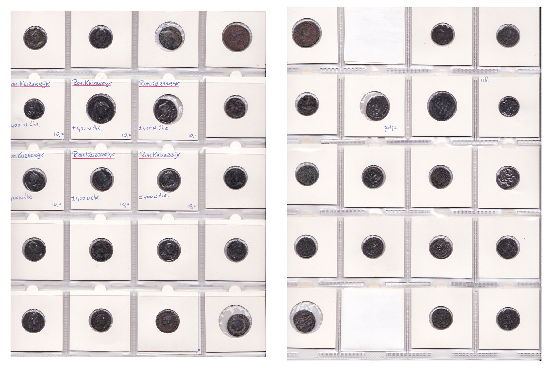 Lot (66) Late roman Bronzes, various rules spanning mostly the end of the 3rd till the 5th century. Mostly worn and corroded, though some better examples and types. Careful examination recommended!