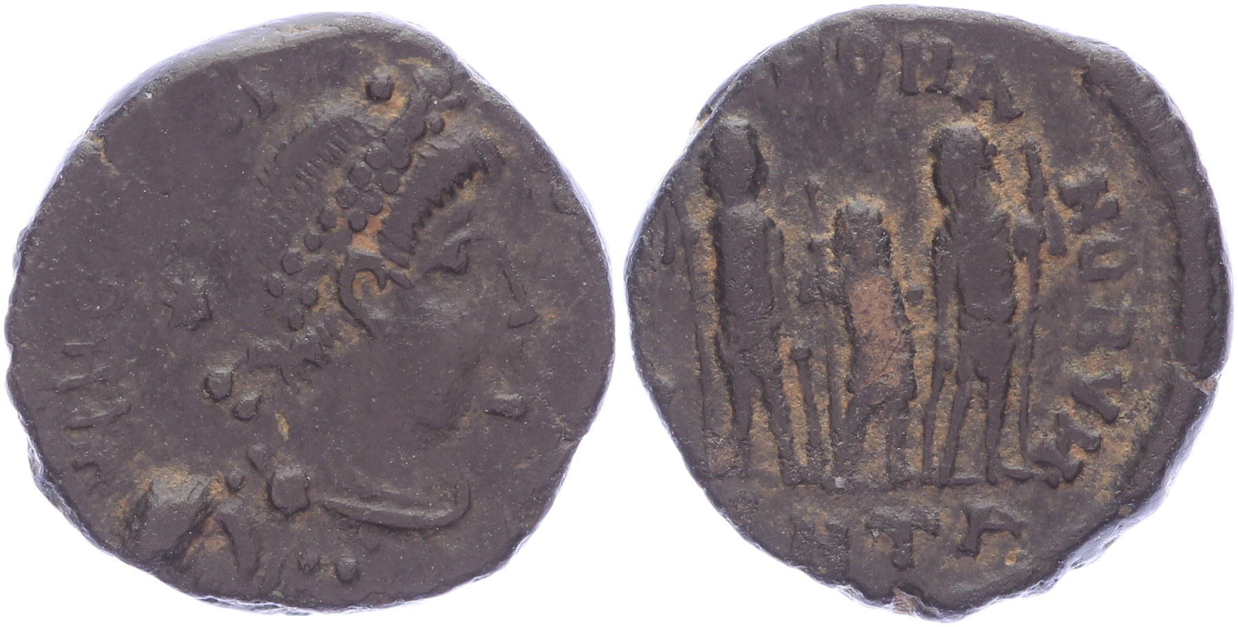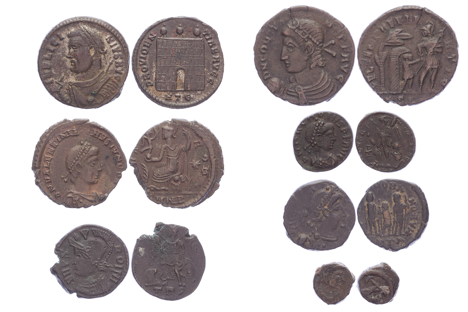 Lot (7) AE coins Licinus to Honorius. Toegevoegd: AE Nummus Anastasius I. Uitgebreide beschrijving bij lot.