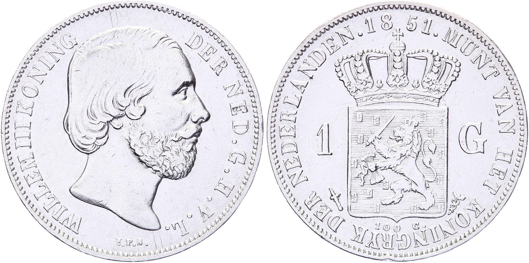 1 Gulden 1851 mmt. zwaard LSch. 486; Sch. 605 Zeer fraai