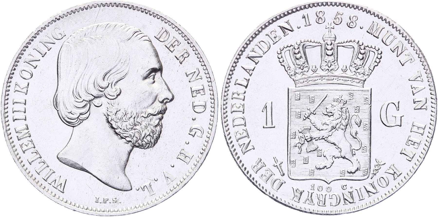 1 Gulden 1858 mmt. zwaard LSch. 492; Sch. 611 Ruim zfr. / Prachtig