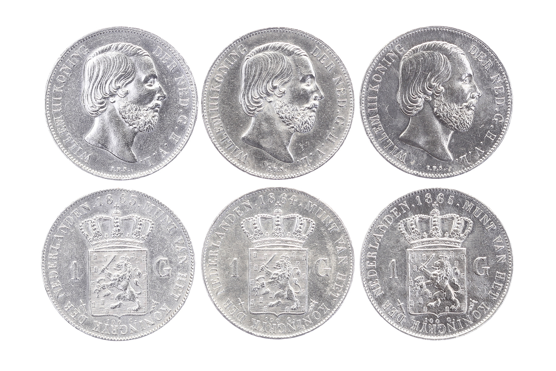 Lot (3) 1 Gulden 1863, 1864 en 1865 LSch. 496-498; Sch. 615-617 Zeer fraai en en beter