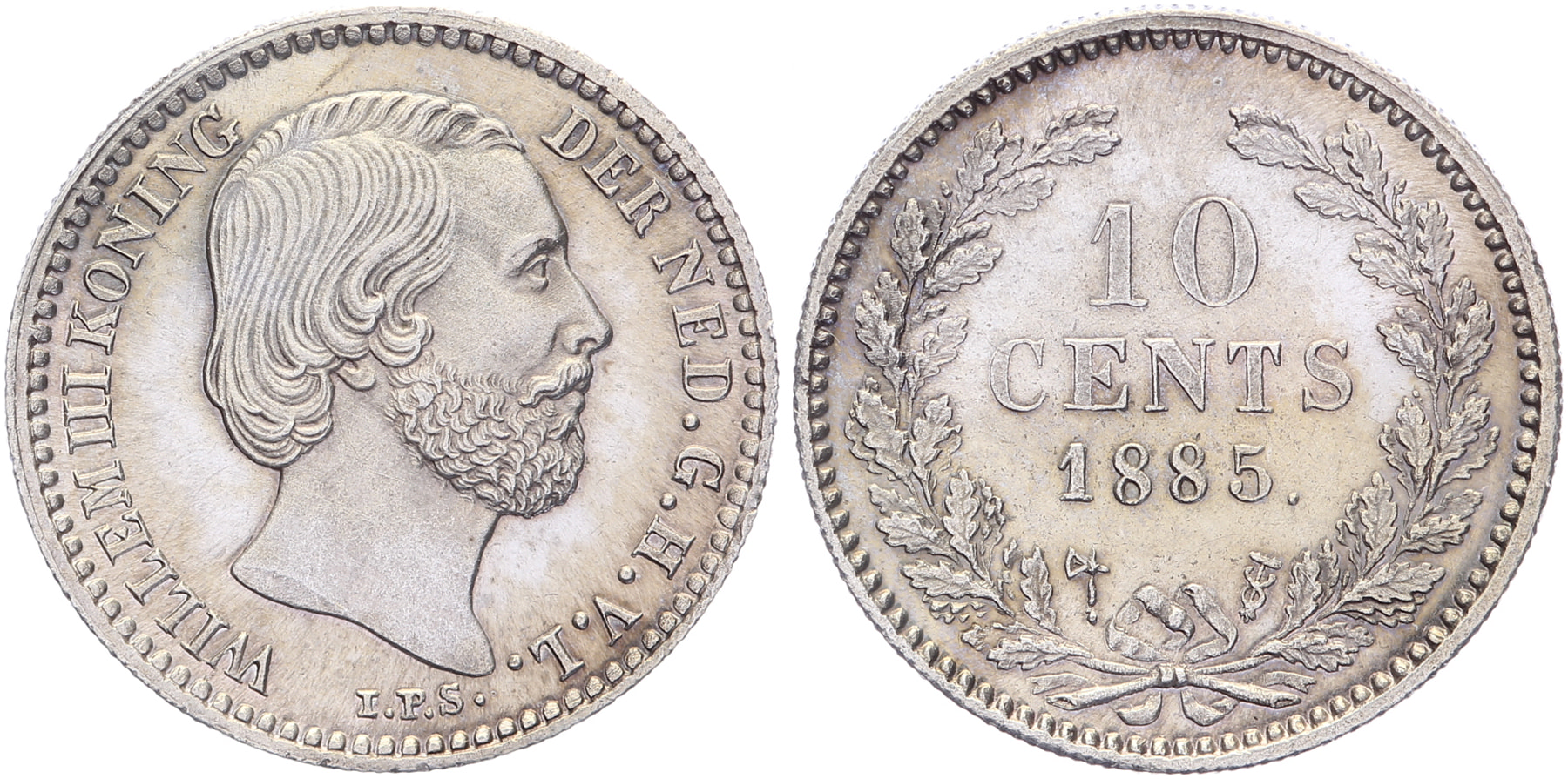 10 Cents 1885 mmt. bijl LSch. 542; Sch. 662. Geslagen met gepolijste stempels Proof