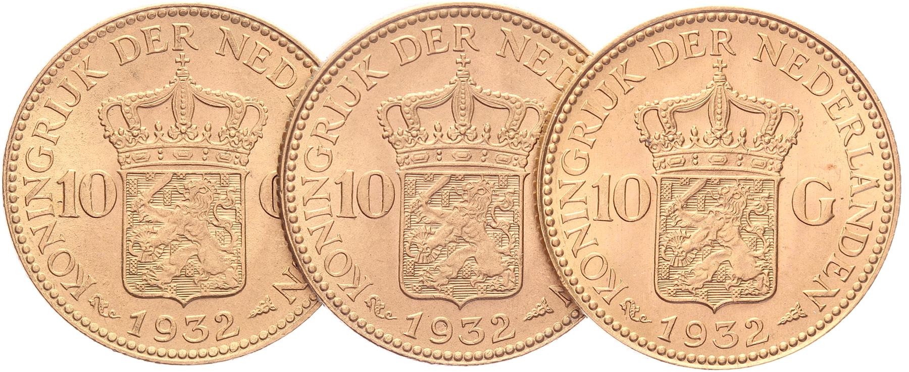 Lot (3) 10 Gulden 1932 mmt. zeepaartje LSch. 638; Sch. 752 Zeer fraai / Prachtig