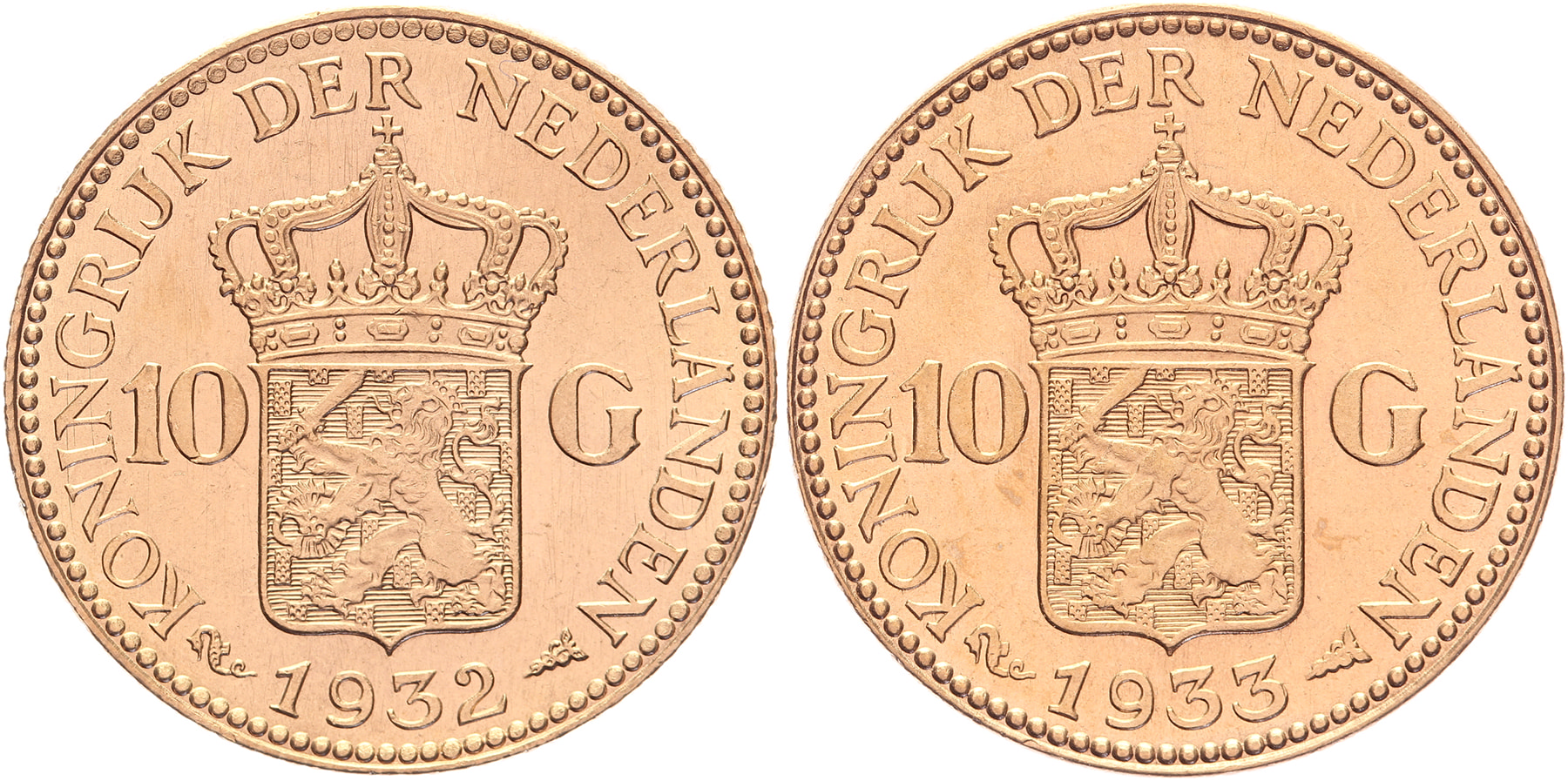 Lot (2) 10 Gulden 1932 en 1933 LSch. 638, 639; Sch. 752, 753 Prachtig