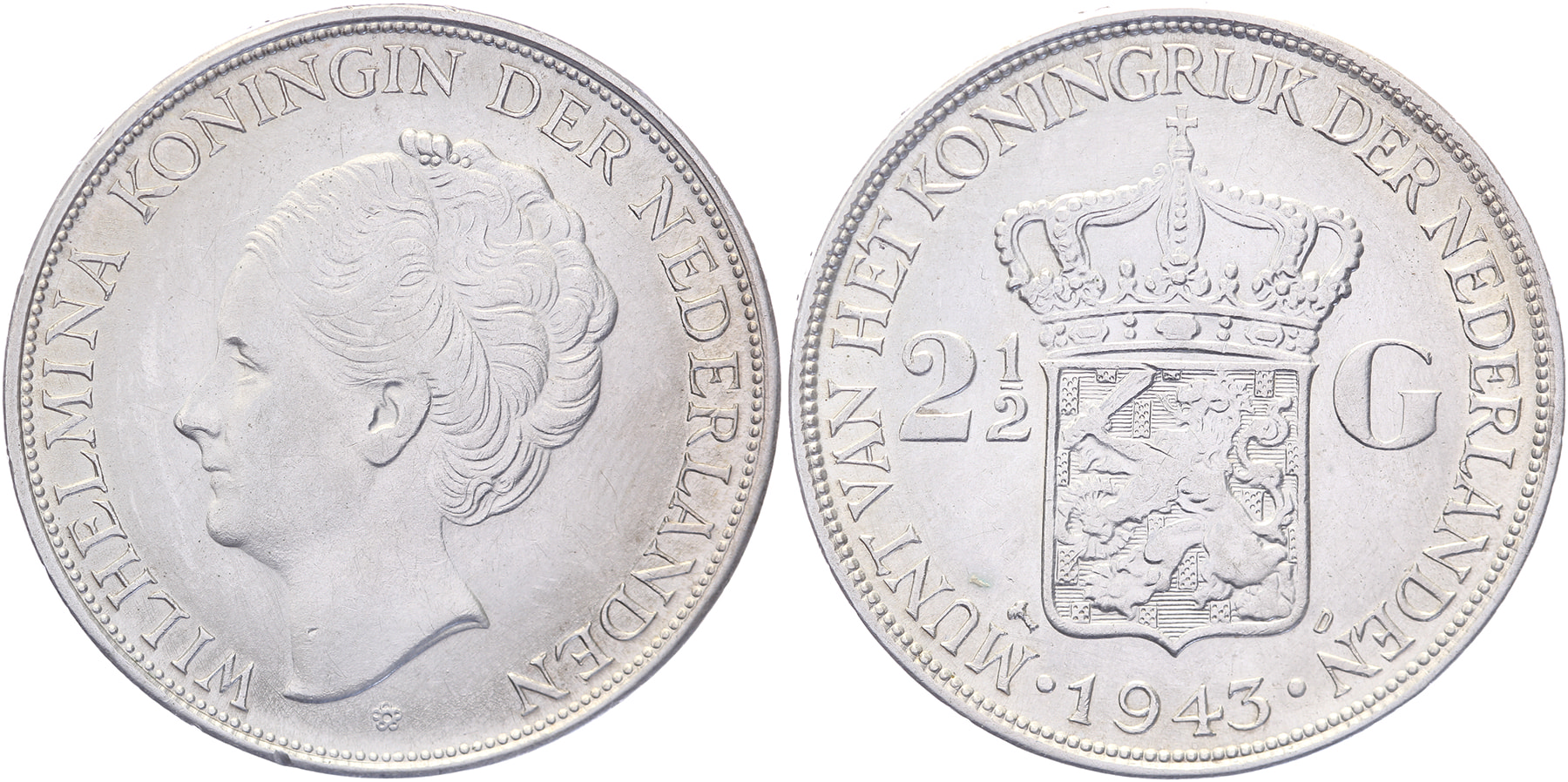 Rijksdaalder 1943D mmt. palmboom LSch. 678; Sch. 1072 Prachtig / FDC ⁂