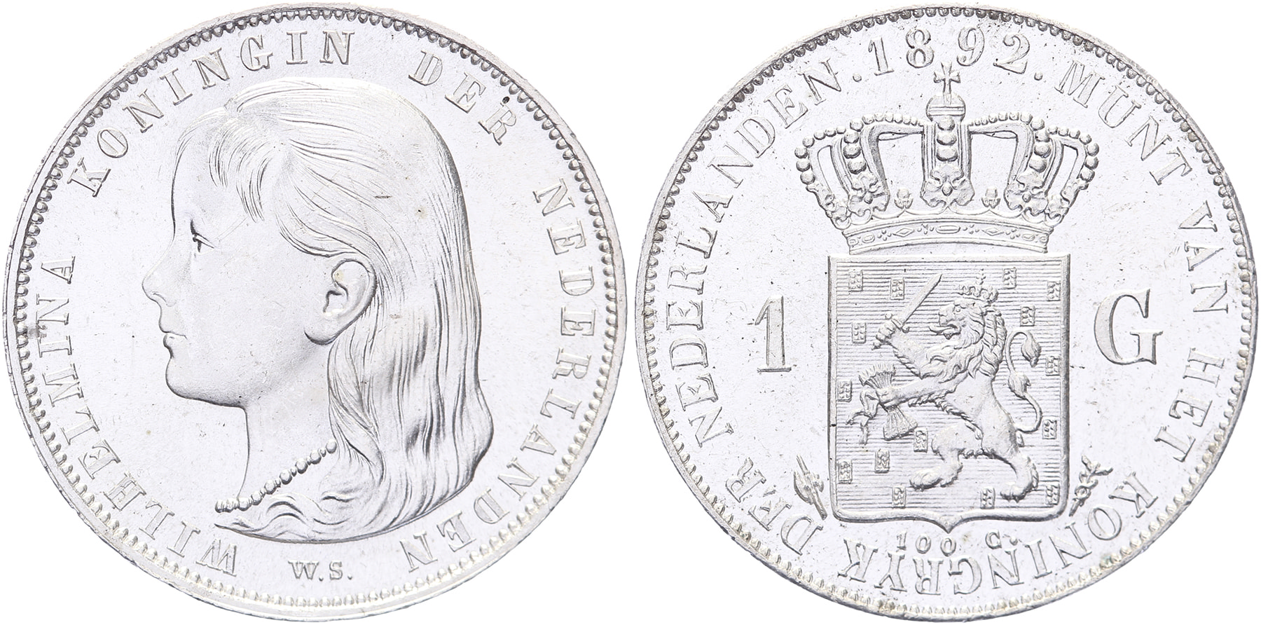 1 Gulden 1892 mmt. hellebaard LSch. 684; Sch. 795 Vrijwel FDC