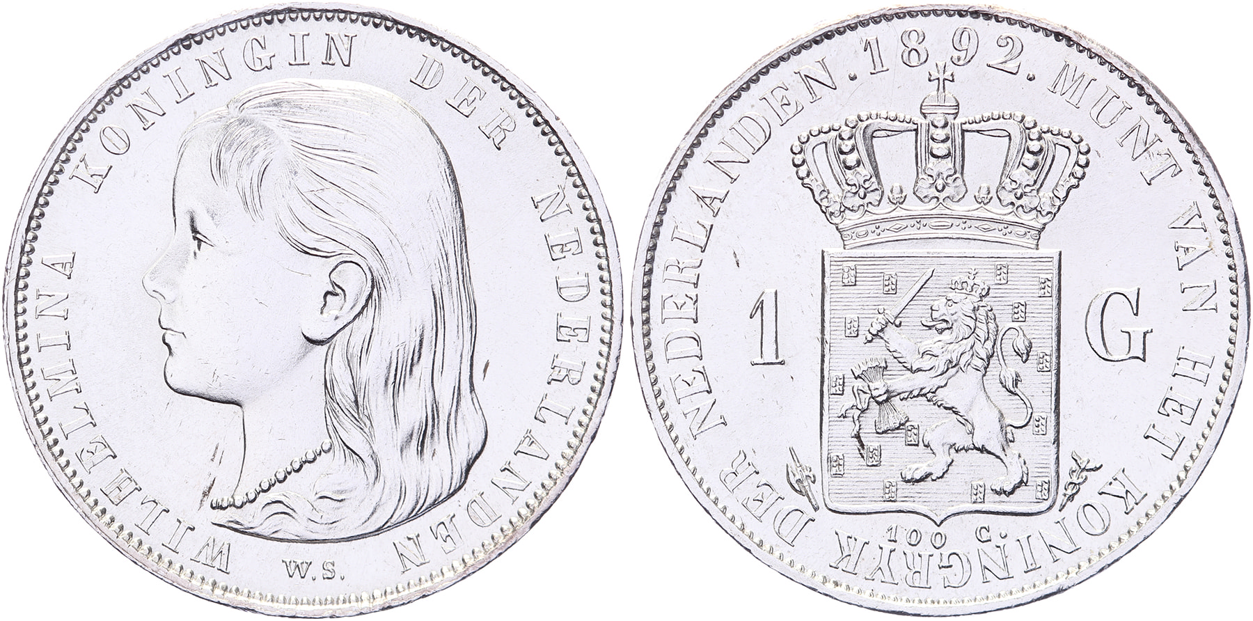 1 Gulden 1892 mmt. hellebaard LSch. 684; Sch. 795 Ruim pr. / Bijna FDC