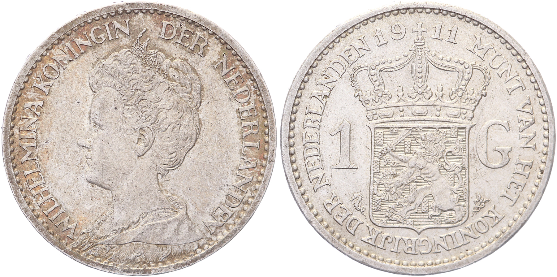 1 Gulden 1911 mmt. zeepaardje LSch. 696; Sch. 813. Patina vz Zeer fraai