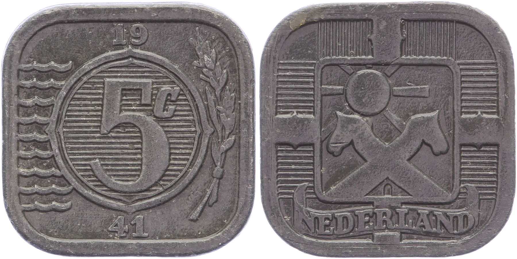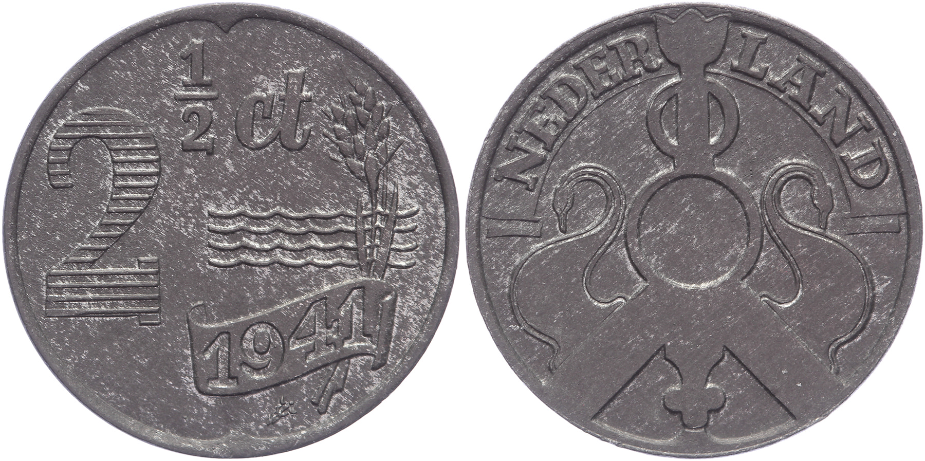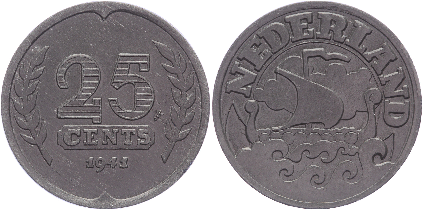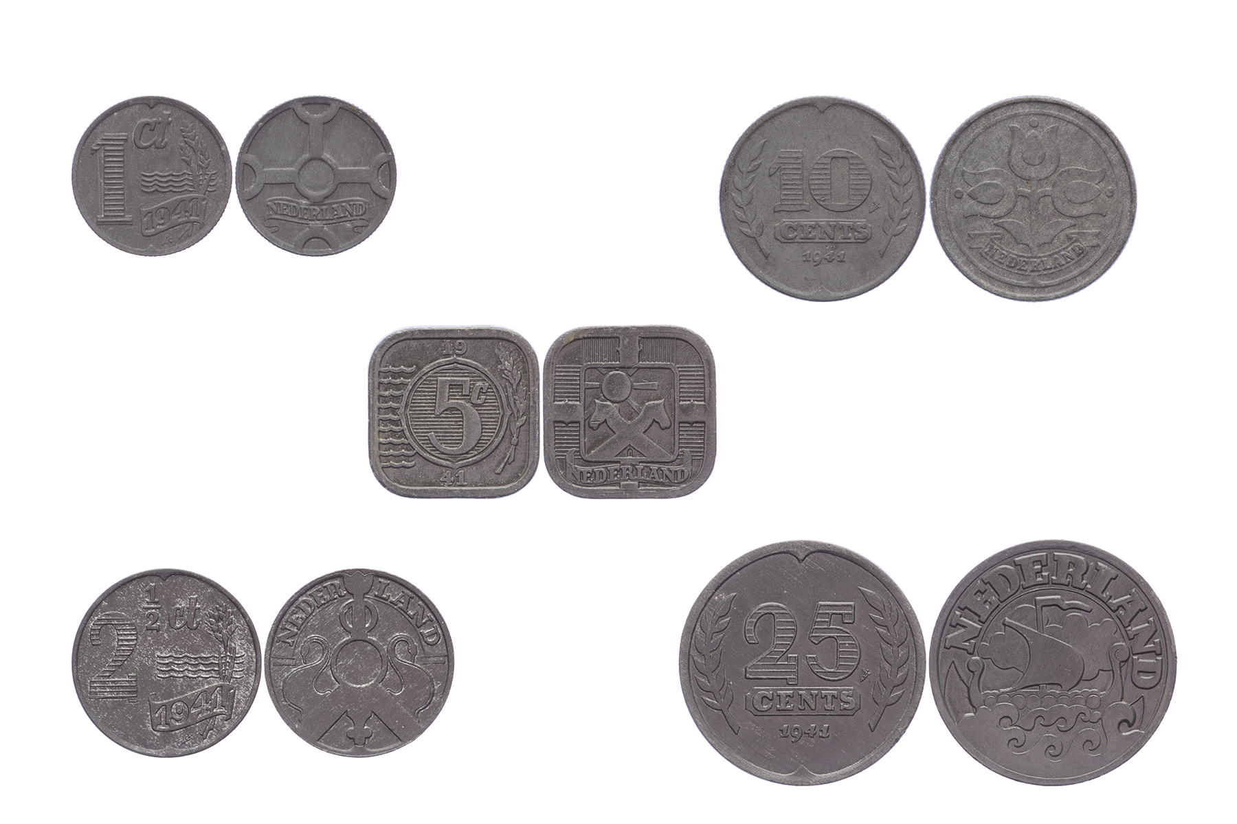 Lot (5) Geslagen onder Duitse bezetting: 1 t/m 25 Cents 1941 zink, complete serie LSch. 912, 871, 843, 820, 772; Sch. 1039, 1037, 1034, 1031, 1028 Prachtig ⁂