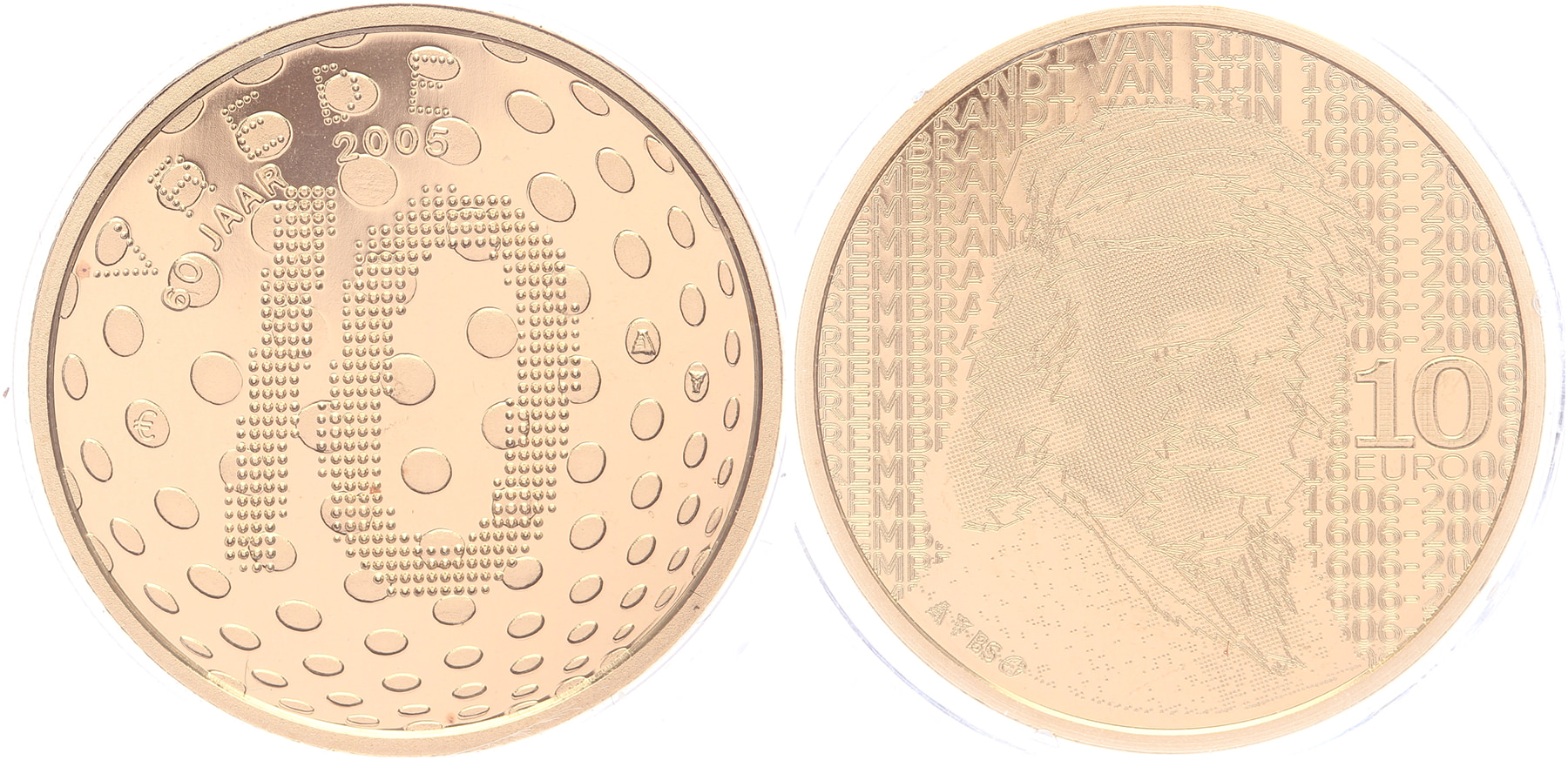Lot (2) 10 euro 2005 Vredes Tientje; 10 euro 2006 Rembrandt Tientje. Proof in capsule.