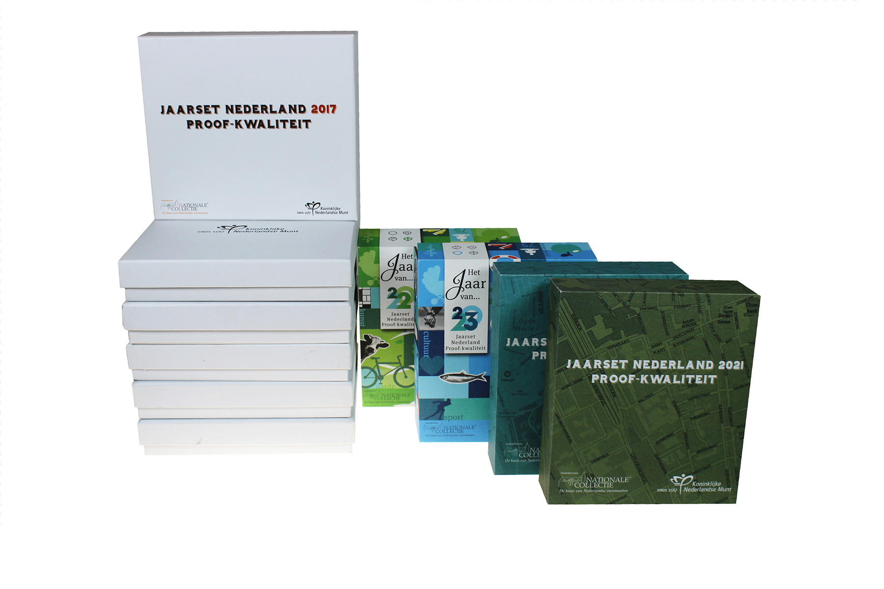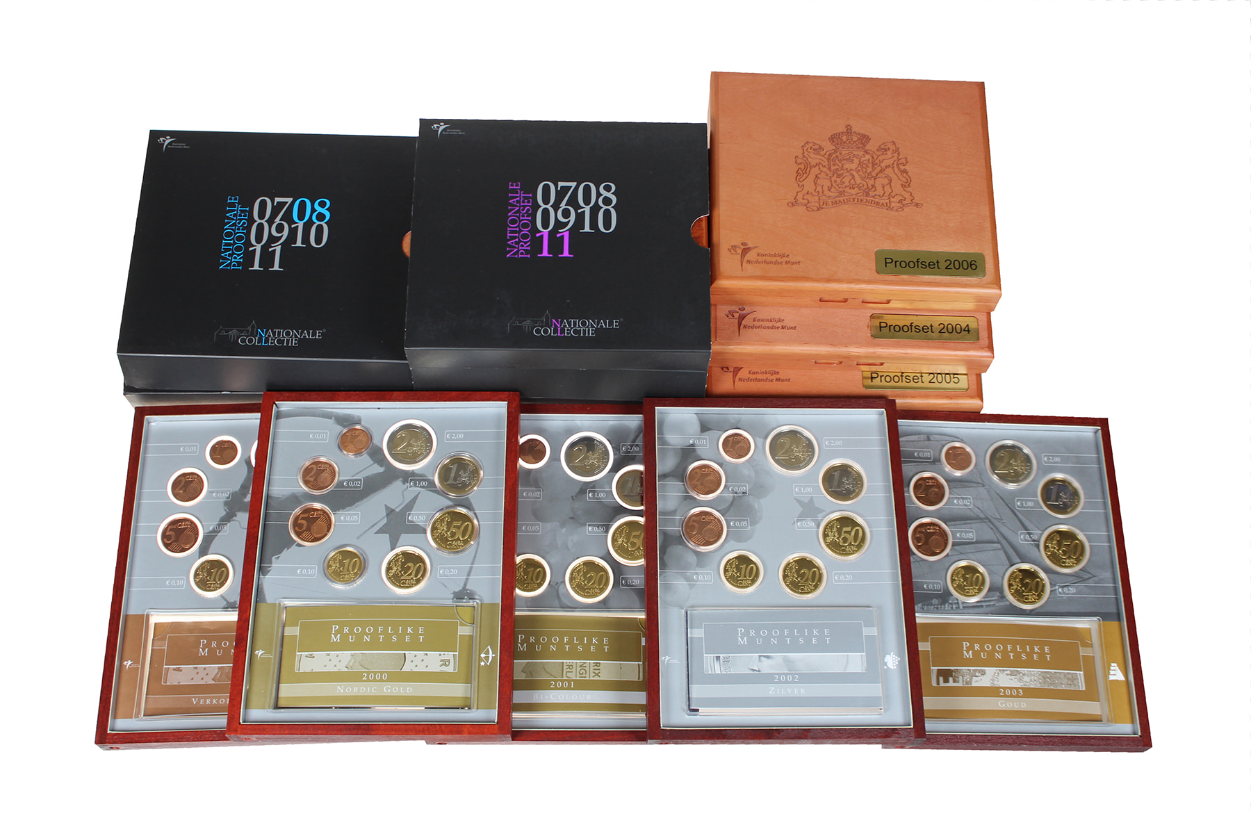 Doos met complete serie proofsets Nederland 1999 t/m 2023 (totaal 23 sets).