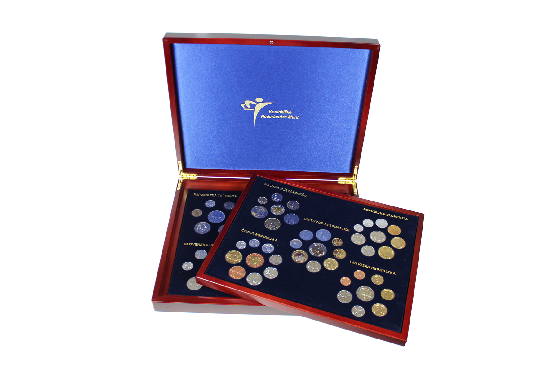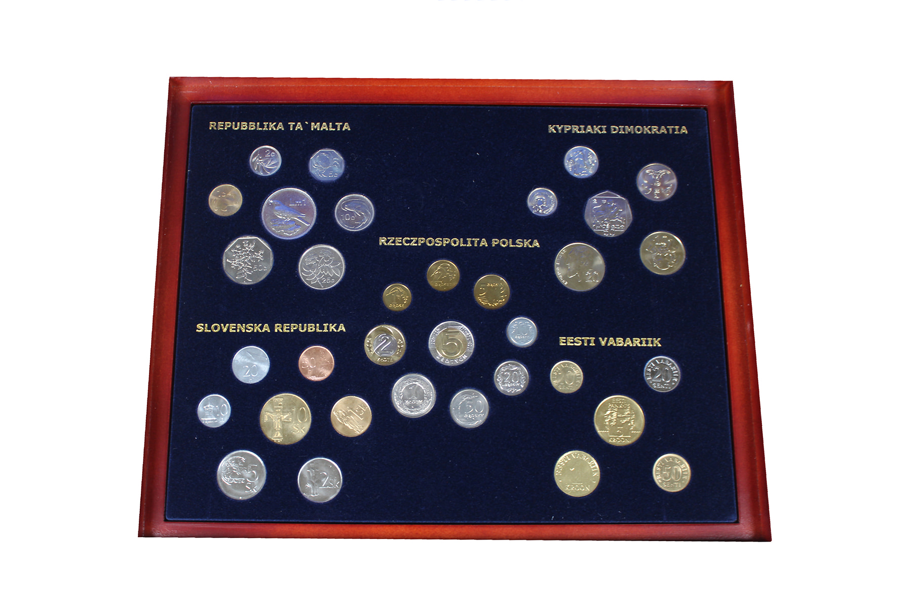 Luxe kist met de circulatiemunten van de 10 nieuwe EU-landen.