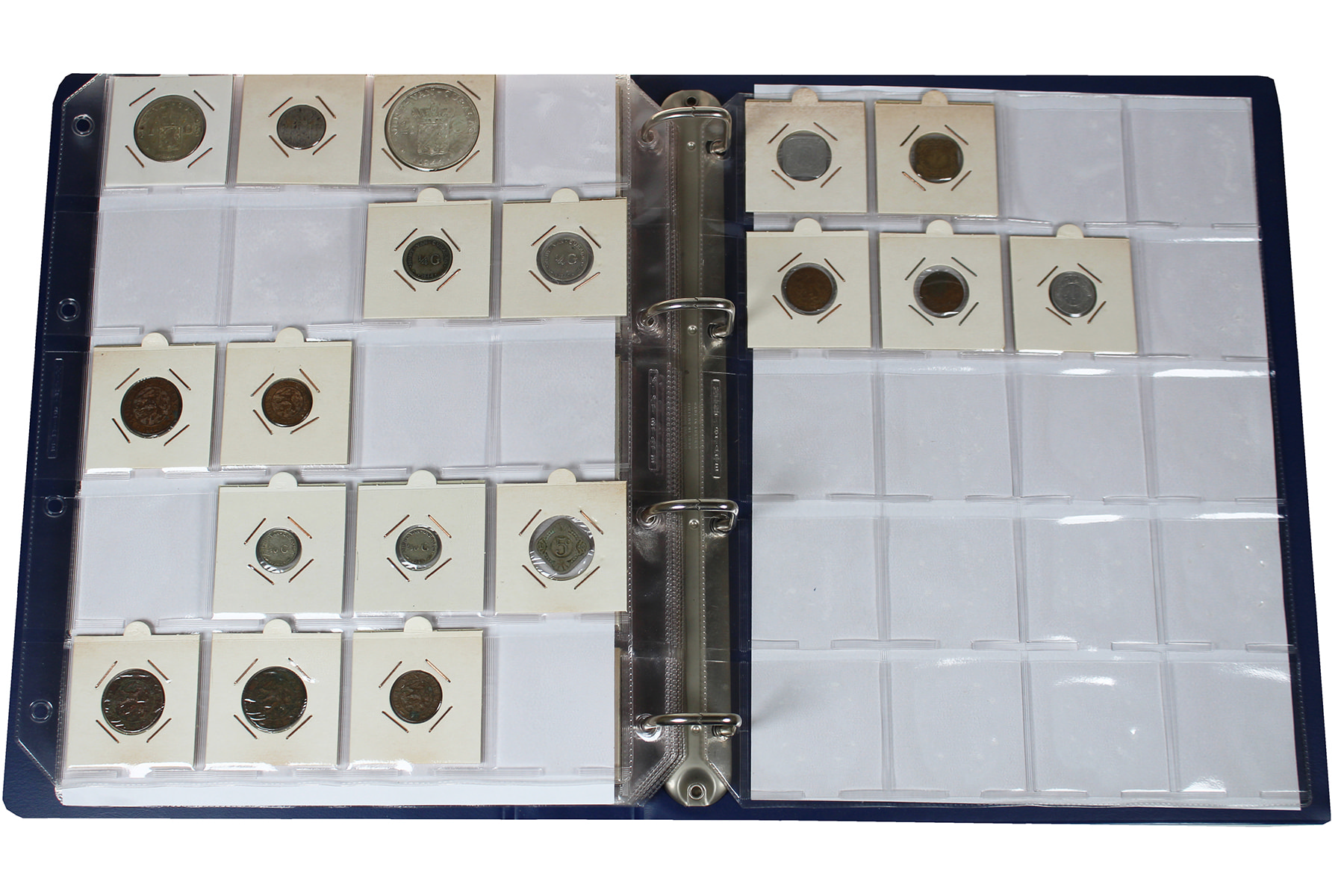 Blauw album met munten Nederlandse Antillen, Curaçao en Nederlands-Indië. O.a. 1 gulden 1839.