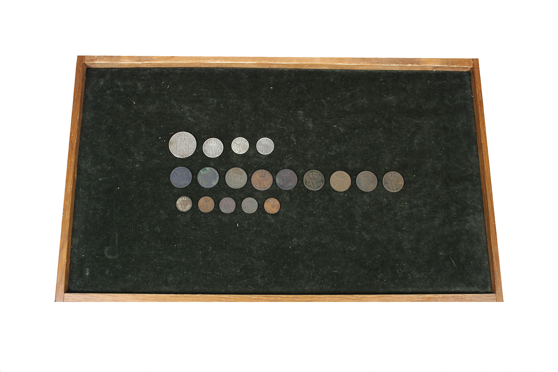 Doosje (20) muntjes Willem I, van ½ cent t/m gulden, mindere kwaliteiten.