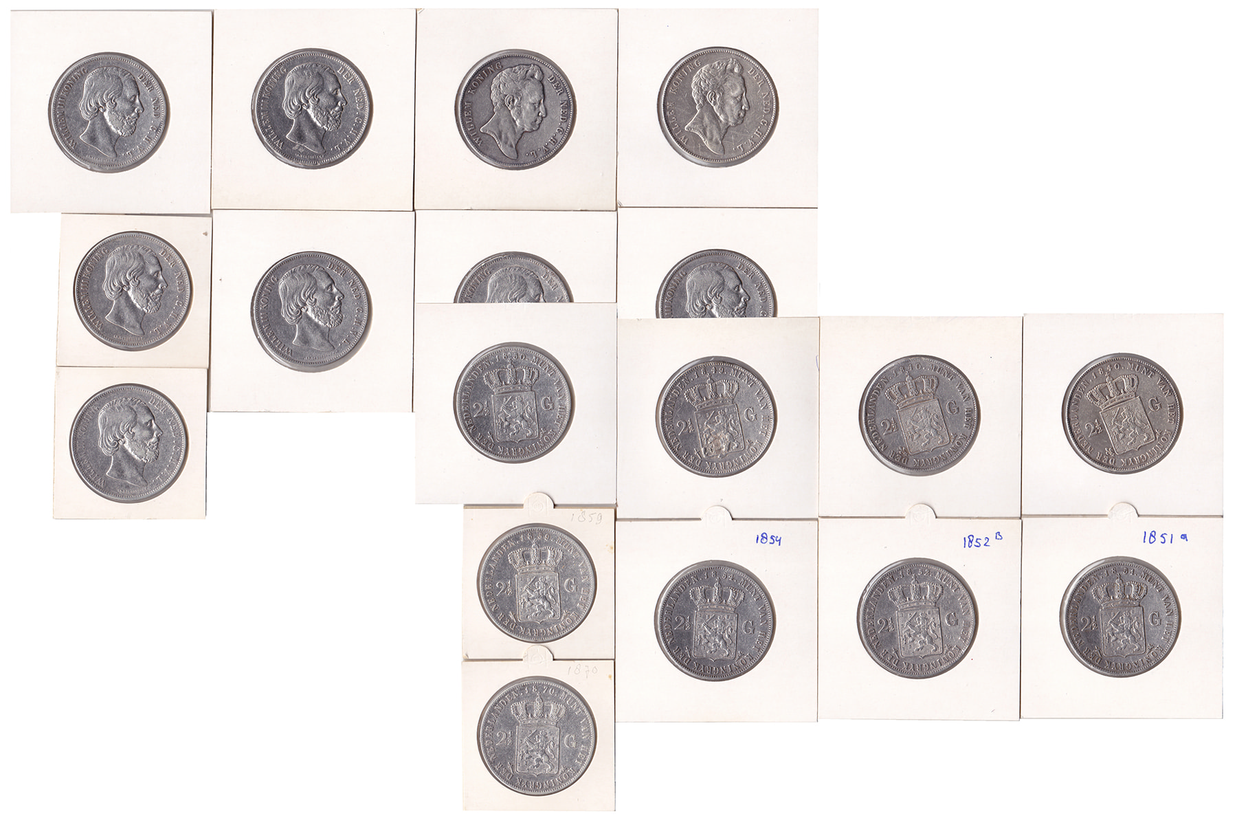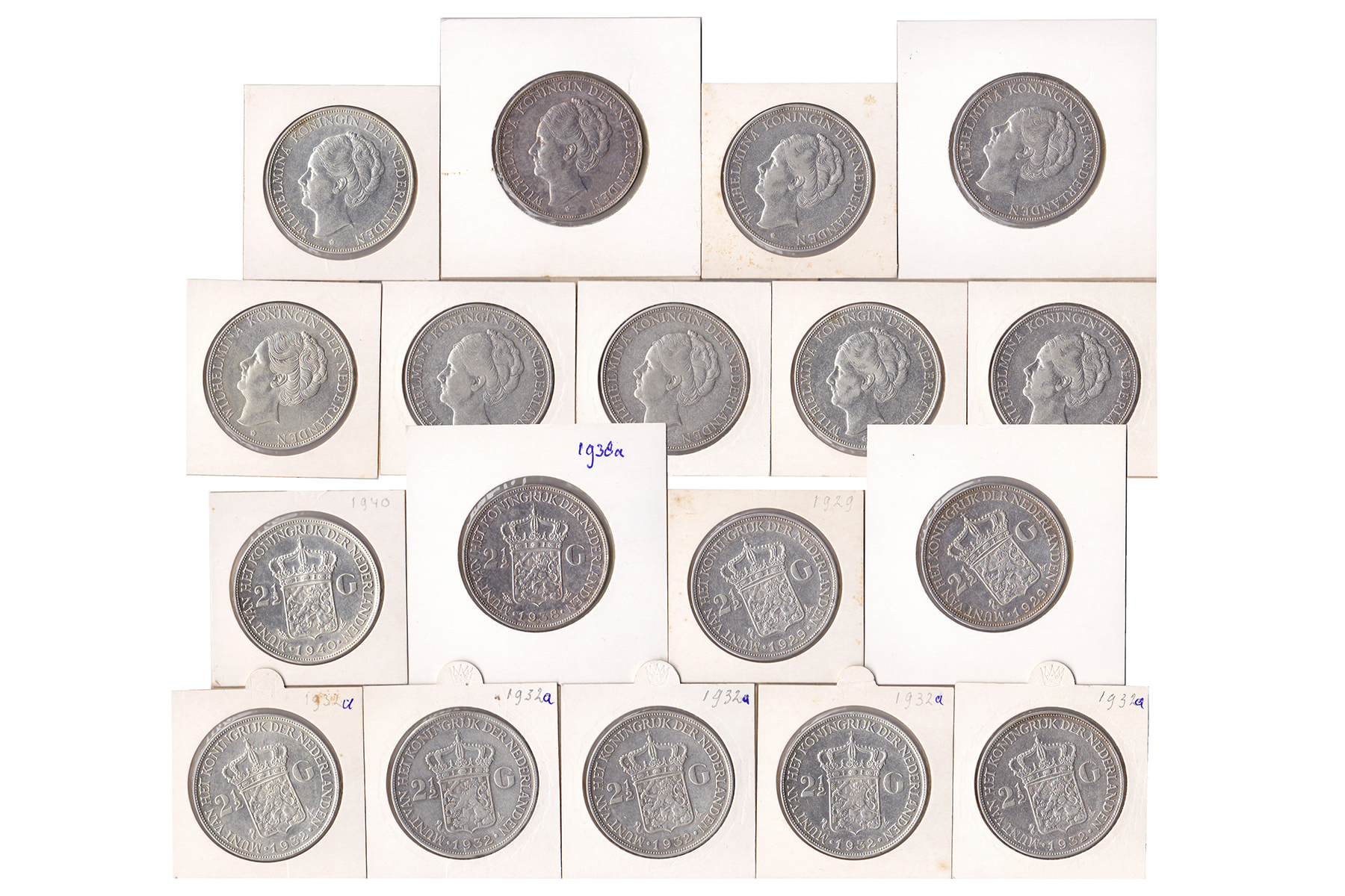 Doosje met lot (18) rijksdaalders Willem I 1840 (2) t/m Wilhelmina 1940.